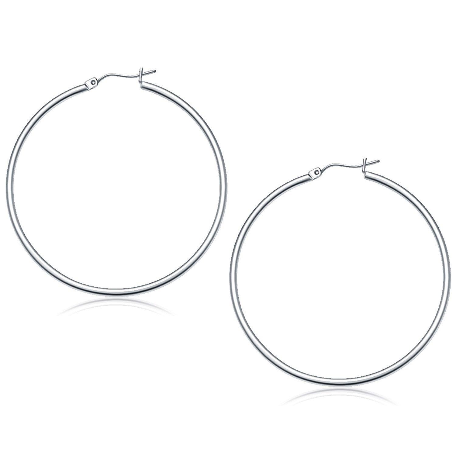 10k White Gold Polished Hoop Earrings (2x50mm)