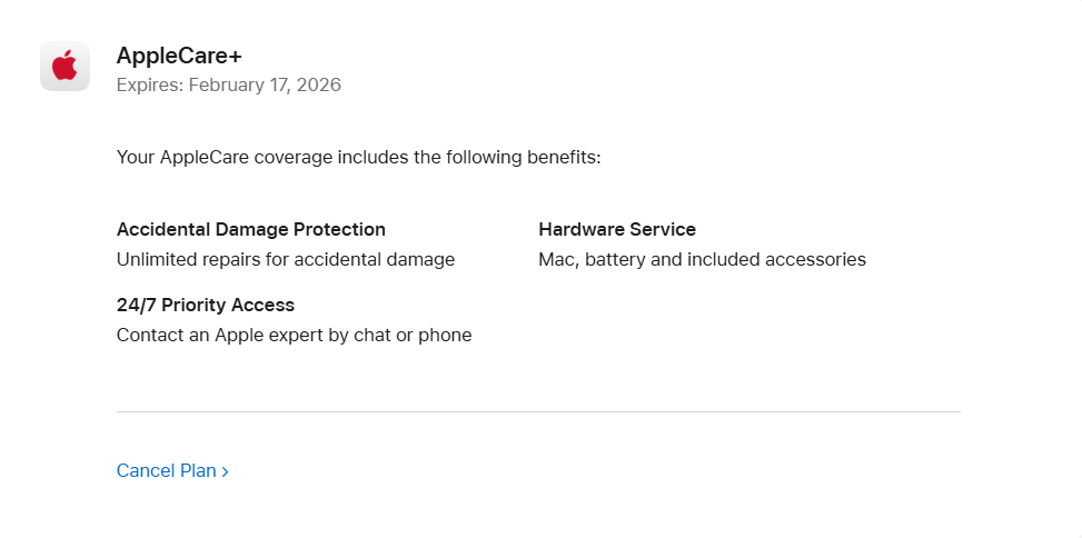 Warranty: It comes with AppleCare+ until 02/17/26 and 90-Day SafeTech Warranty with options to upgrade up to 3 Years.