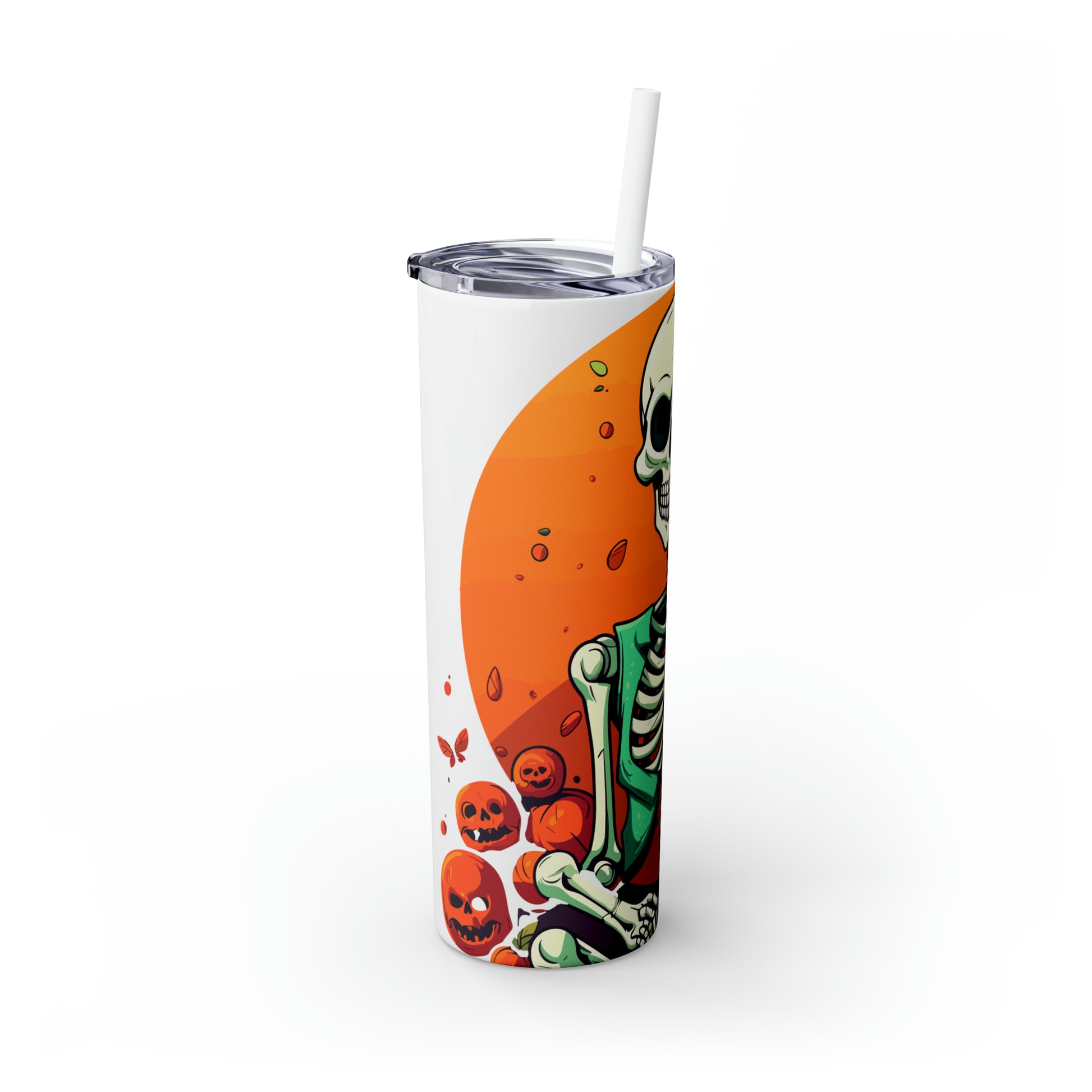 20oz Halloween Skinny Tumbler with Straw - Spooky Drinkware, Skeleton Theme, BPA-Free, Reusable Cup, Halloween Tumbler, Halloween Gift