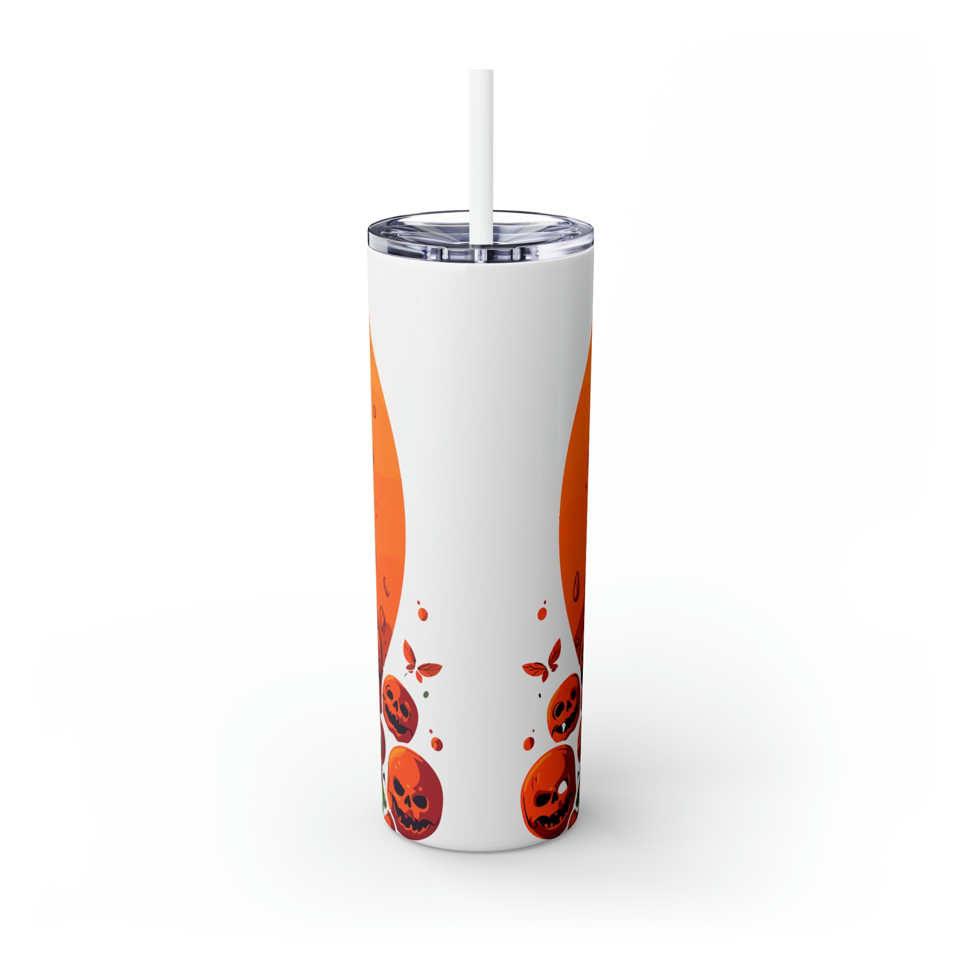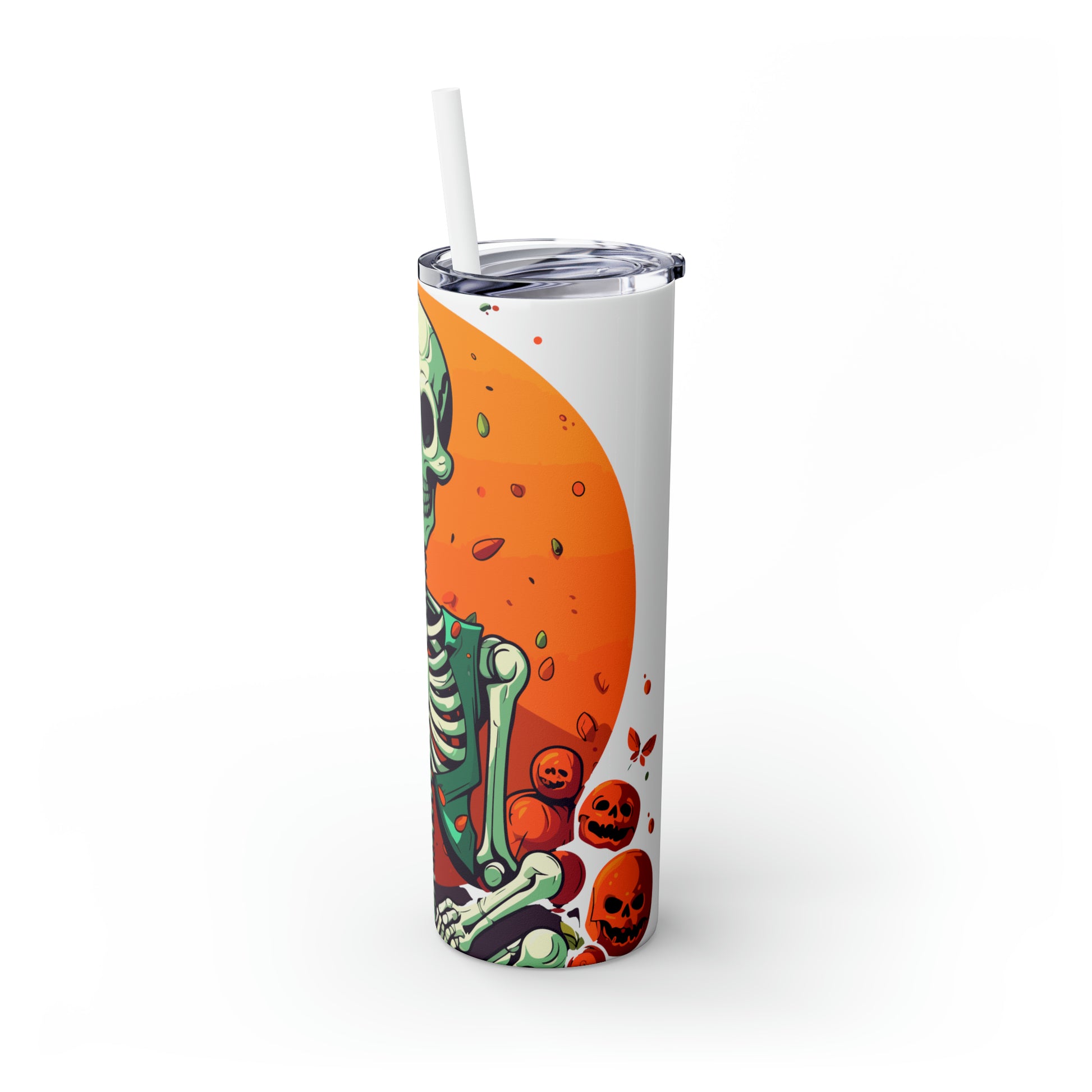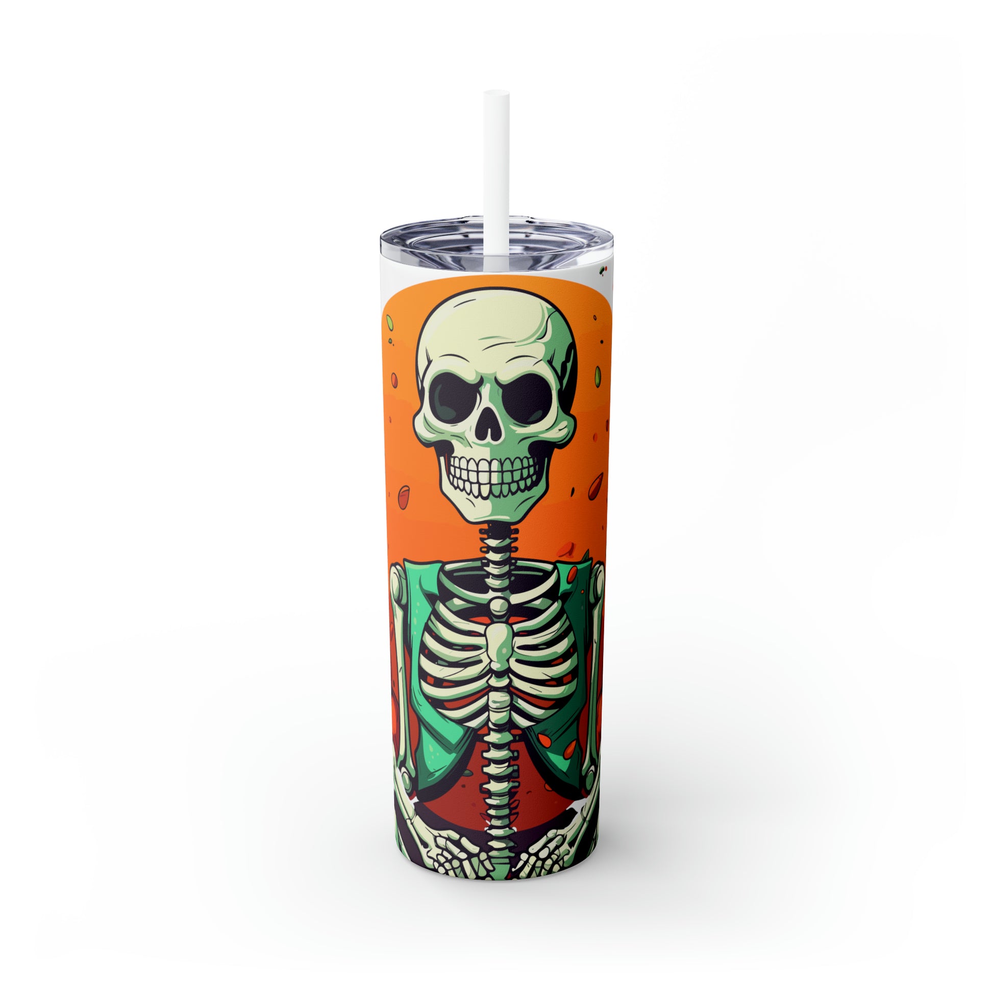 Halloween Skinny Tumbler with Straw 20oz - Spooky Drinkware, Skeleton Theme, BPA-Free, Reusable Cup, Halloween Tumbler, Halloween Gift