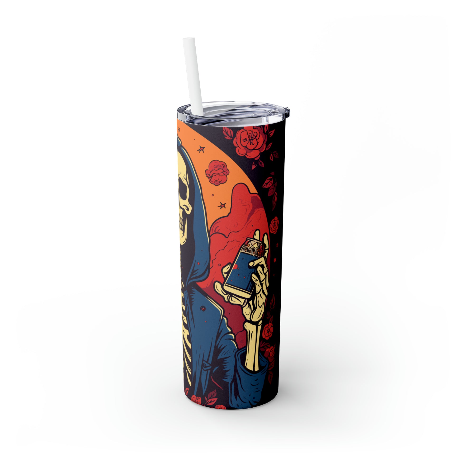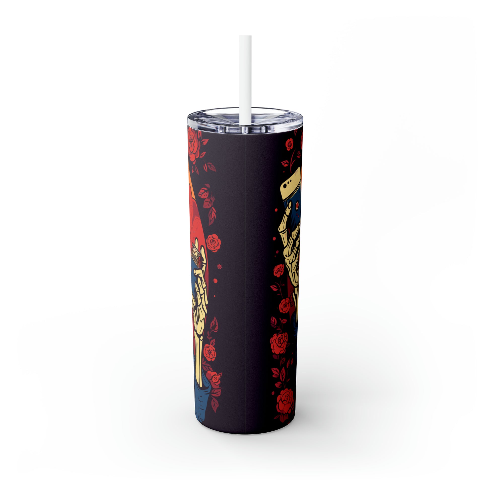 Halloween Skinny Tumbler with Straw 20oz - Spooky Drinkware, Skeleton Theme, BPA-Free, Reusable Cup, Halloween Tumbler, Halloween Gift