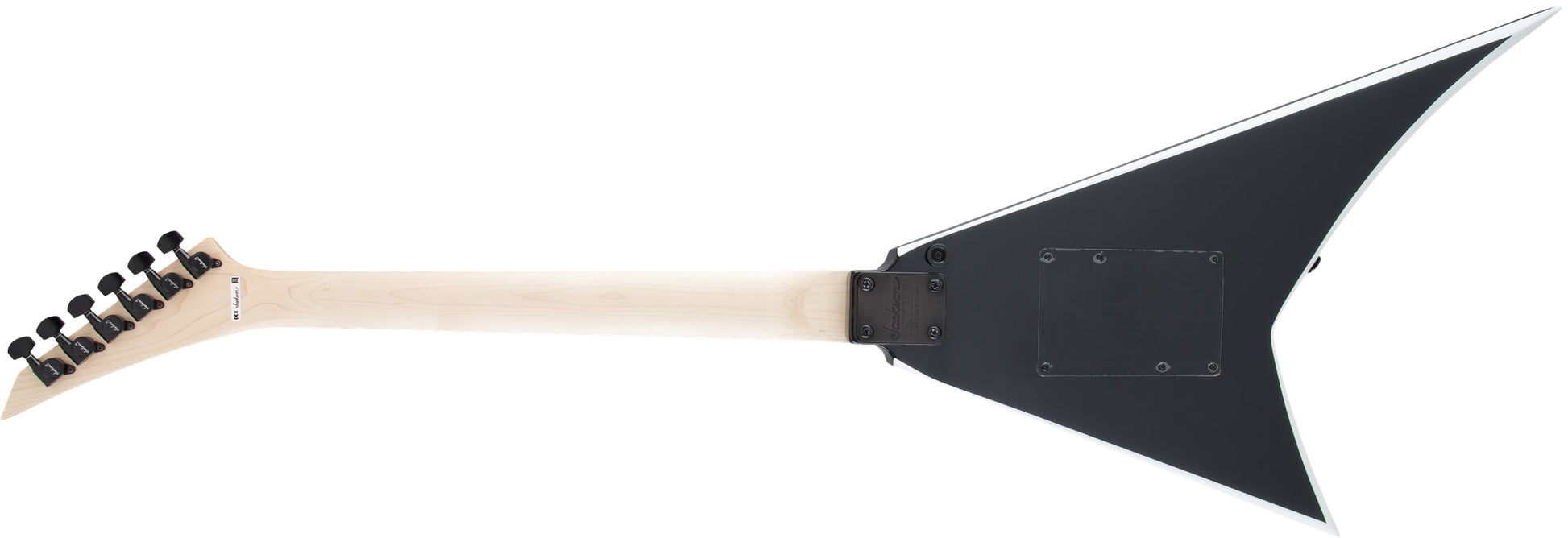 electric guitar Jackson Rhoads poplar body maple neck humbucker pickups Floyd Rose solidbody six string rock guitar metal guitar Jackson Rhoads JS32 electric guitar black with white bevels guitar poplar body solid electric guitar maple speed neck guitar Floyd Rose licensed vibrato bridge high output humbucking pickups 24 jumbo frets guitar right handed rock guitar compound radius fingerboard guitar bolt on neck electric guitar