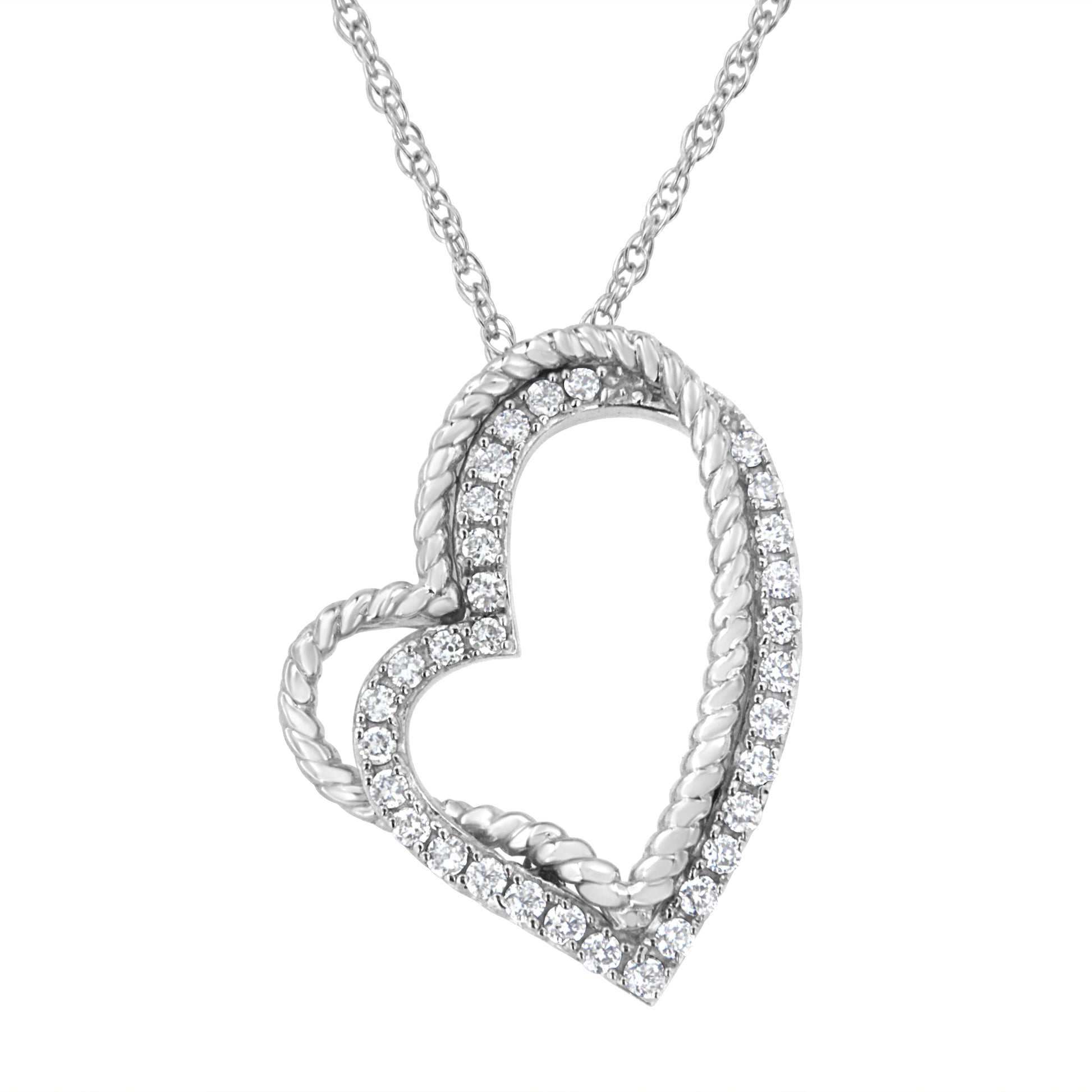 .925 Sterling Silver 1/3 Cttw Lab Grown Diamond Heart Pendant Necklace (F-G Color, Vs2-Si1 Clarity)