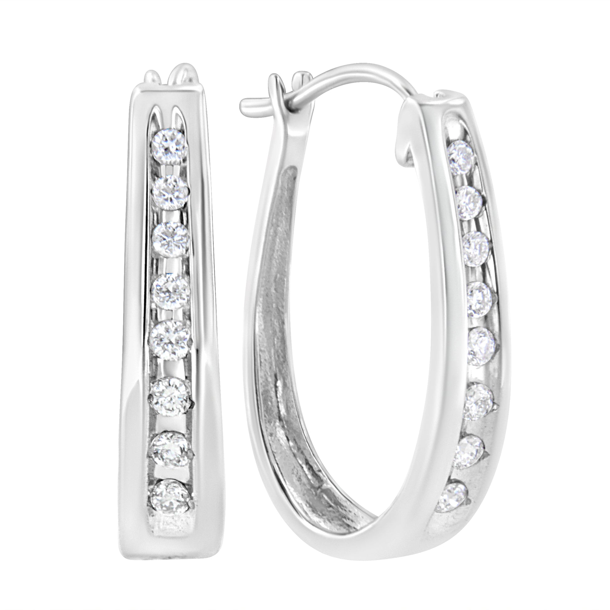 These stunning hoop earrings are made with a gorgeous 1/4 ct tdw diamond design. Crafted in the finest .925 sterling silver, these earrings are made with round-cut lab-grown diamonds embellished in a pretty channel setting. The diamonds are sustainable and ethical, so you can feel good about this purchase. These earrings come with a wire mechanism for a more secure fit.
