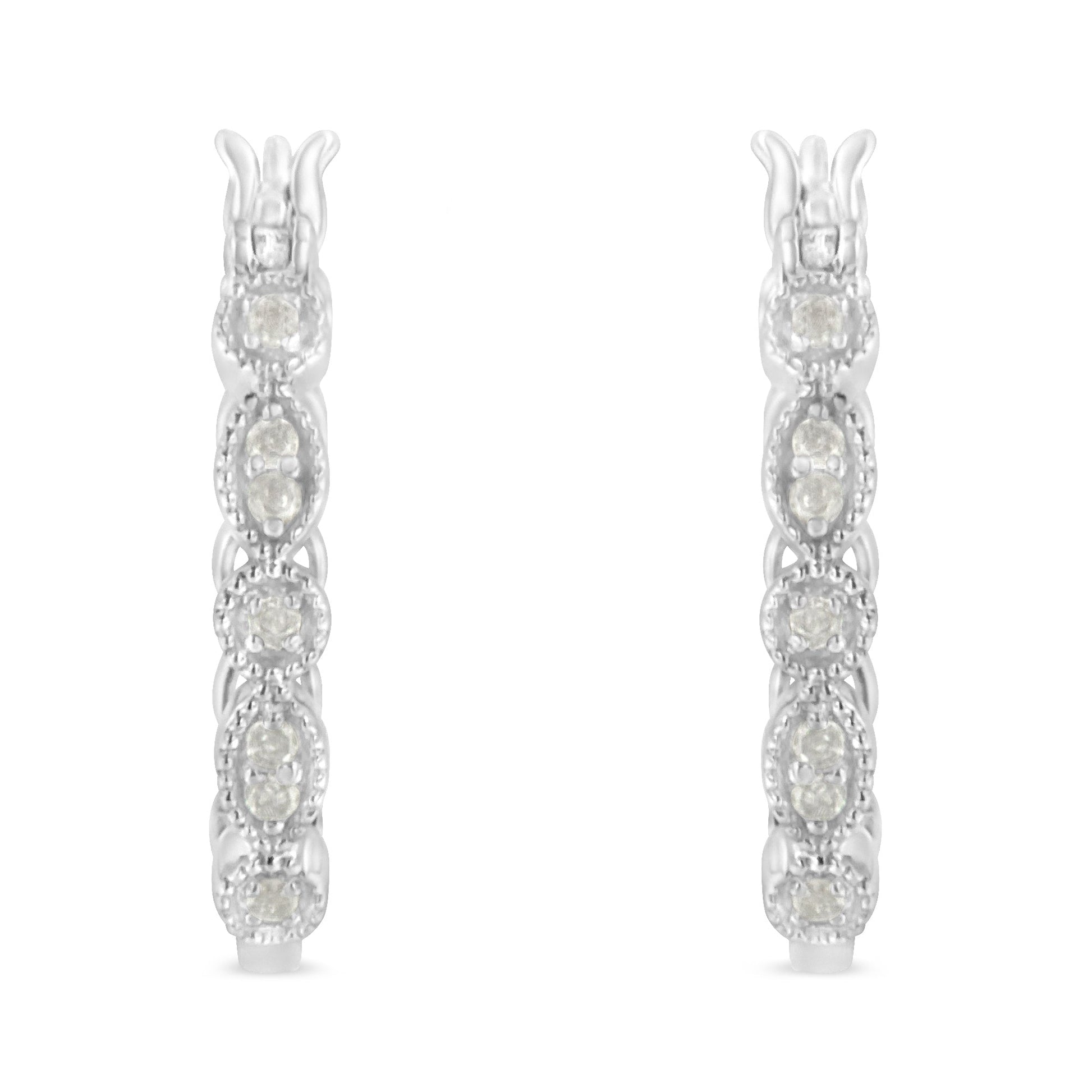 .925 Sterling Silver 1/6 Cttw Diamond Milgrain Hoop Earring (I-J Color, I3 Clarity)