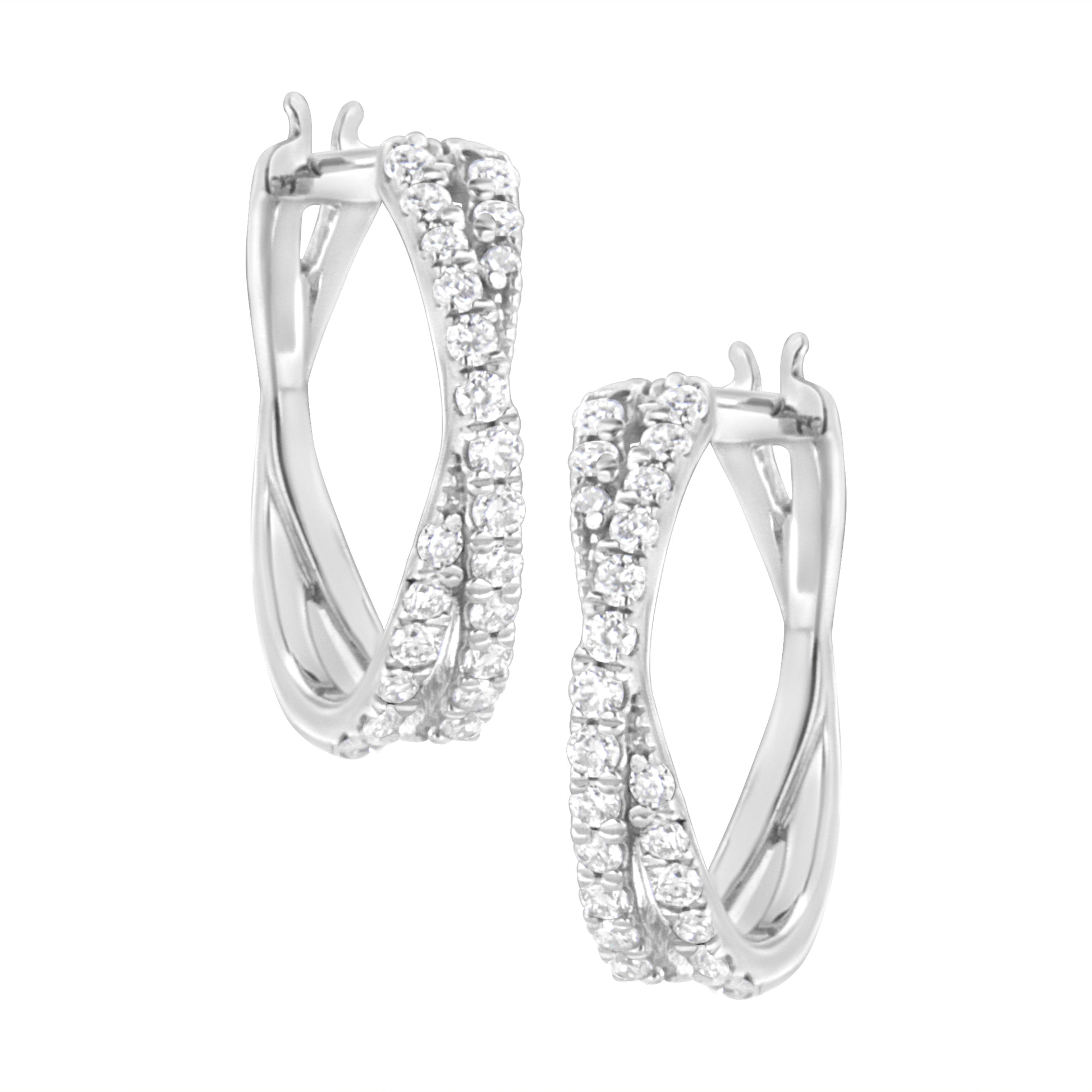 .925 Sterling Silver Lab Grown Diamond Cross Hoop Earring (F-G Color, Vs2-Si1 Clarity)