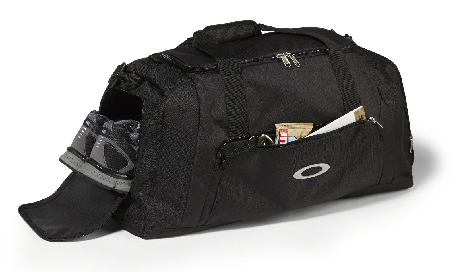 This duffle bag was designed with multi-functional in mind everything from weekend getaways to workouts at the gym. This Oakley Gym to Street duffel bag features a medium horseshoe opening with dual zippers ensures easy entry into the spacious main compartment, a large size pocket good for shoes or dirty clothes and additional exterior pockets allow for specialized storage of smaller items. A padded air mesh shoulder strap allows for comfortable carrying through from airport terminals or to the locker room, while giving a stylish athletic look.