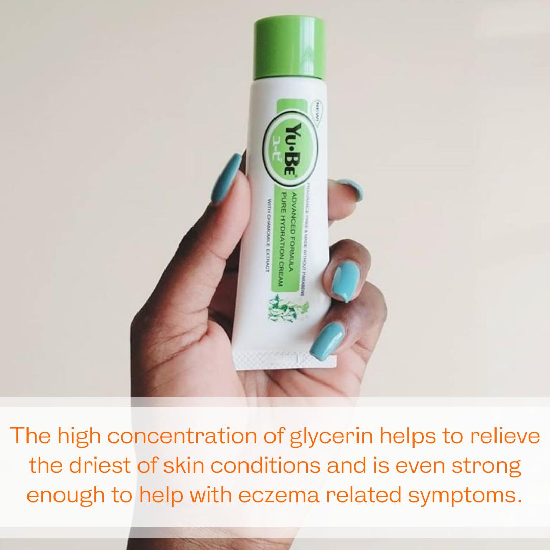 Yu-Be's Advanced Formula Pure Hydration Cream with Chamomile Extract is a fragrance-free, concentrated moisturizing skin cream that's 100% vegan and powerfully hydrating, yet gentle enough for those with extra-sensitive skin!