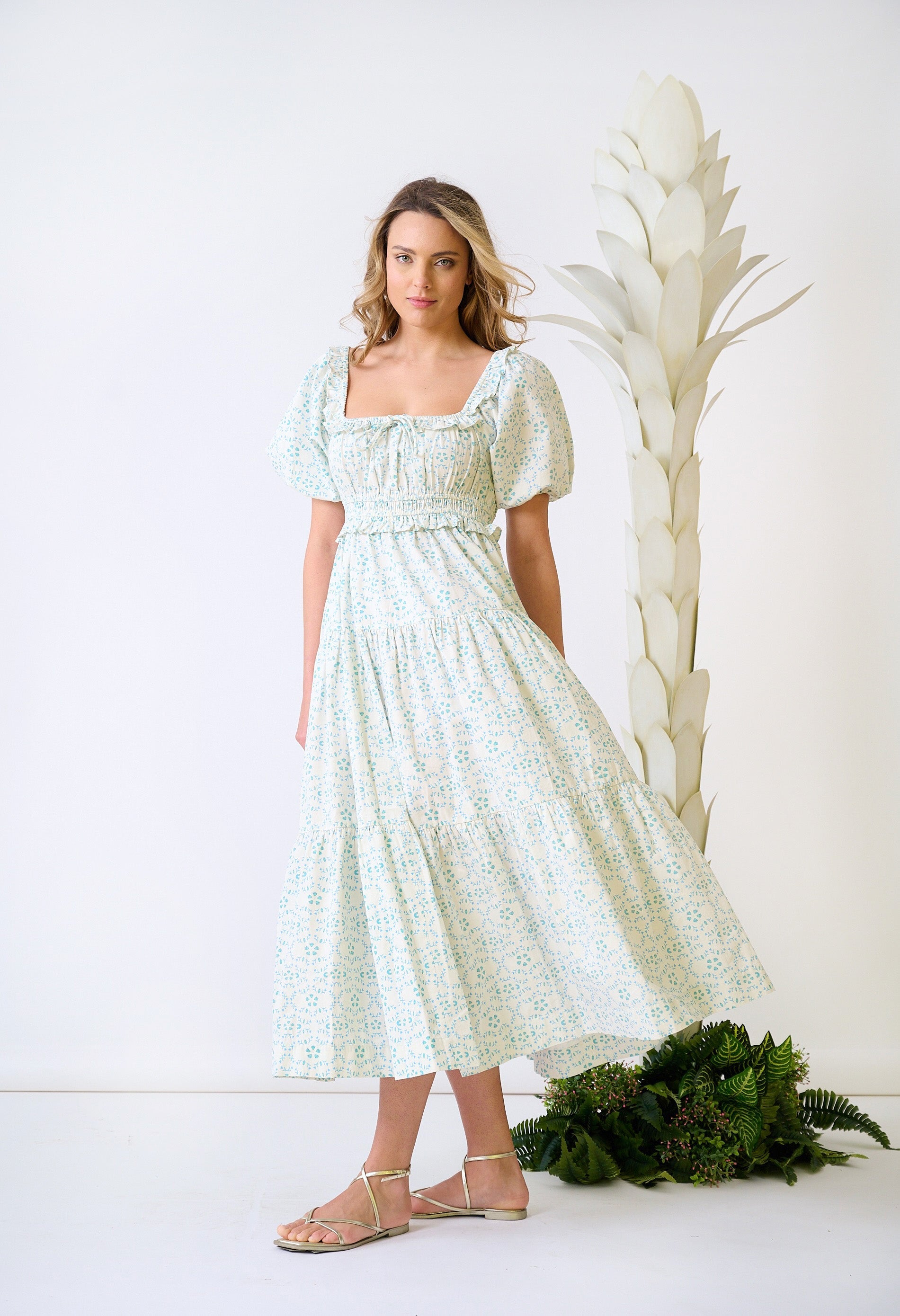 Our Amelia Midi combines a dash of Southern whimsy with a touch of vintage inspiration. Crafted from a lightweight cotton twill and digitally printed with an original Brooks Avenue print, this dress features a flattering elasticated square neckline with raglan style puff sleeves. Ruffle detailing around the neckline adds a touch of femininity, and an elastic waist ensures comfort for all-day wear.