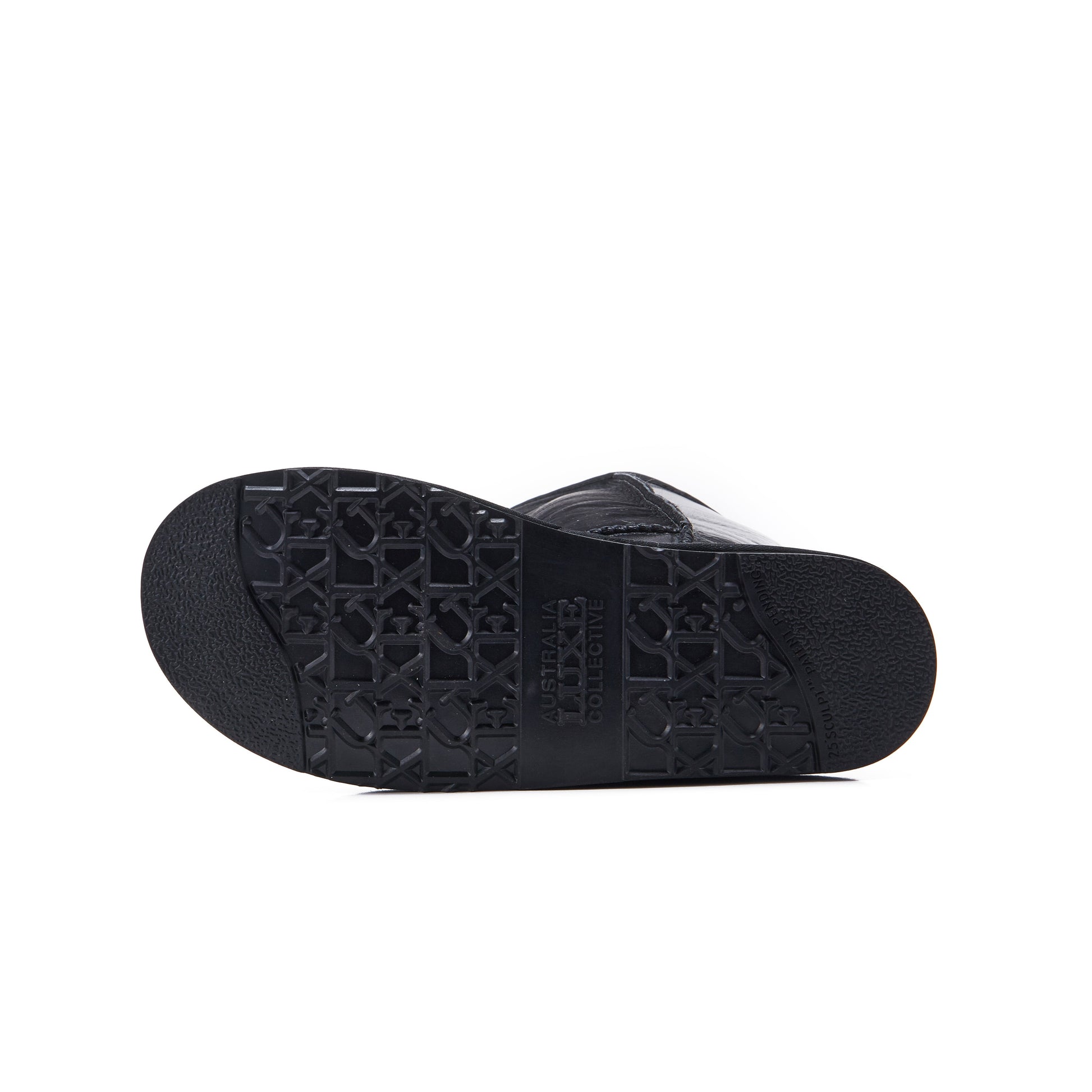 Satin Black Knee Height Sheepskin Fur Lined Boot ANGEL