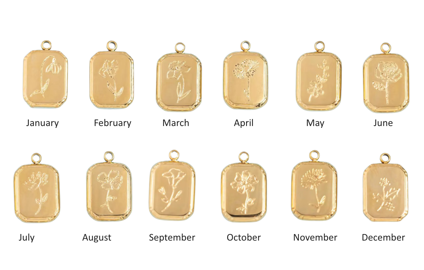 necklace engraved pendant birth flower gold necklace box chain flower pendant birth flower engraved necklace 18k gold over brass necklace diamond cut box chain necklace engraved flower pendant necklace 18 inch lobster clasp necklace personalized birth flower jewelry