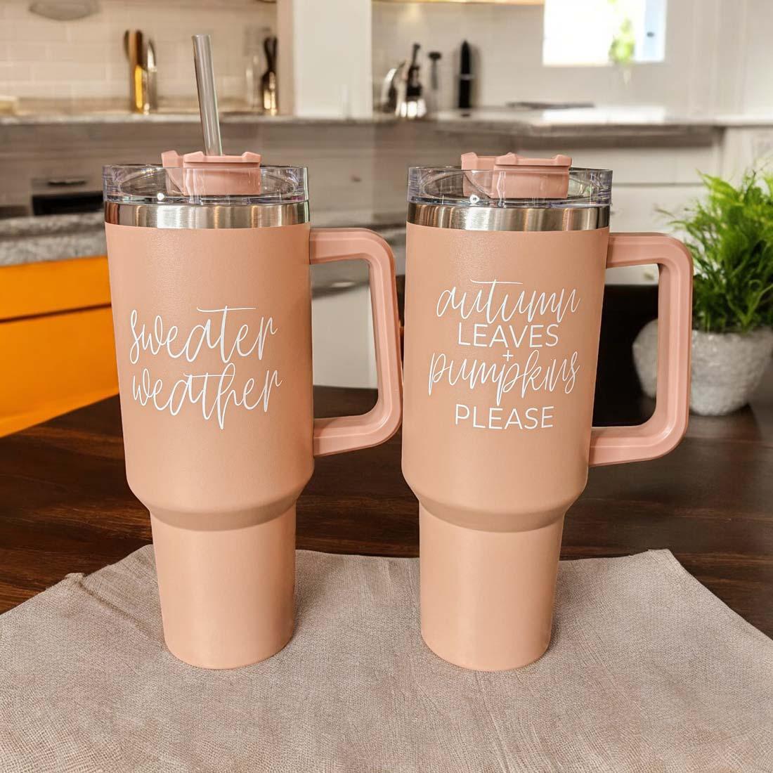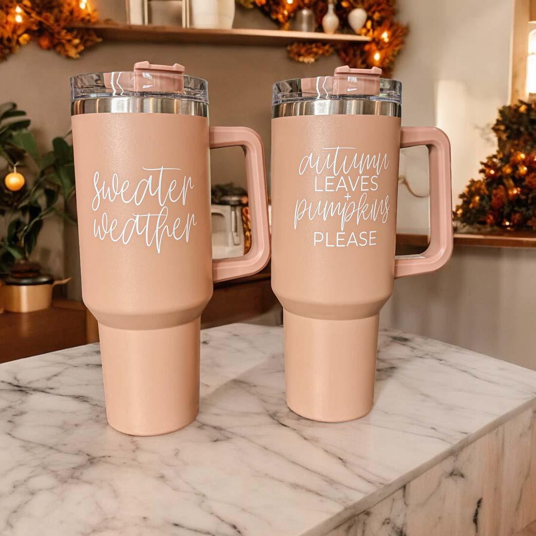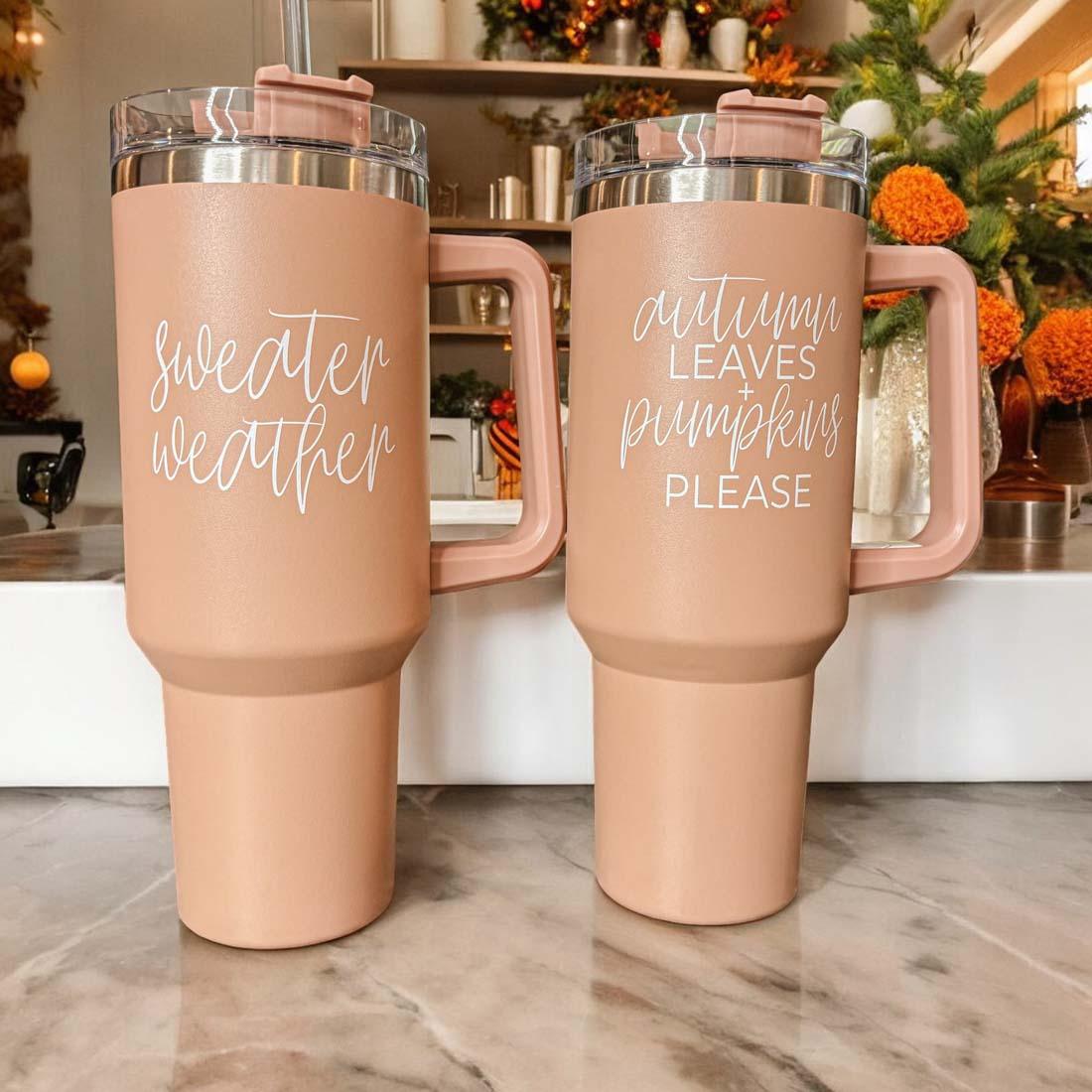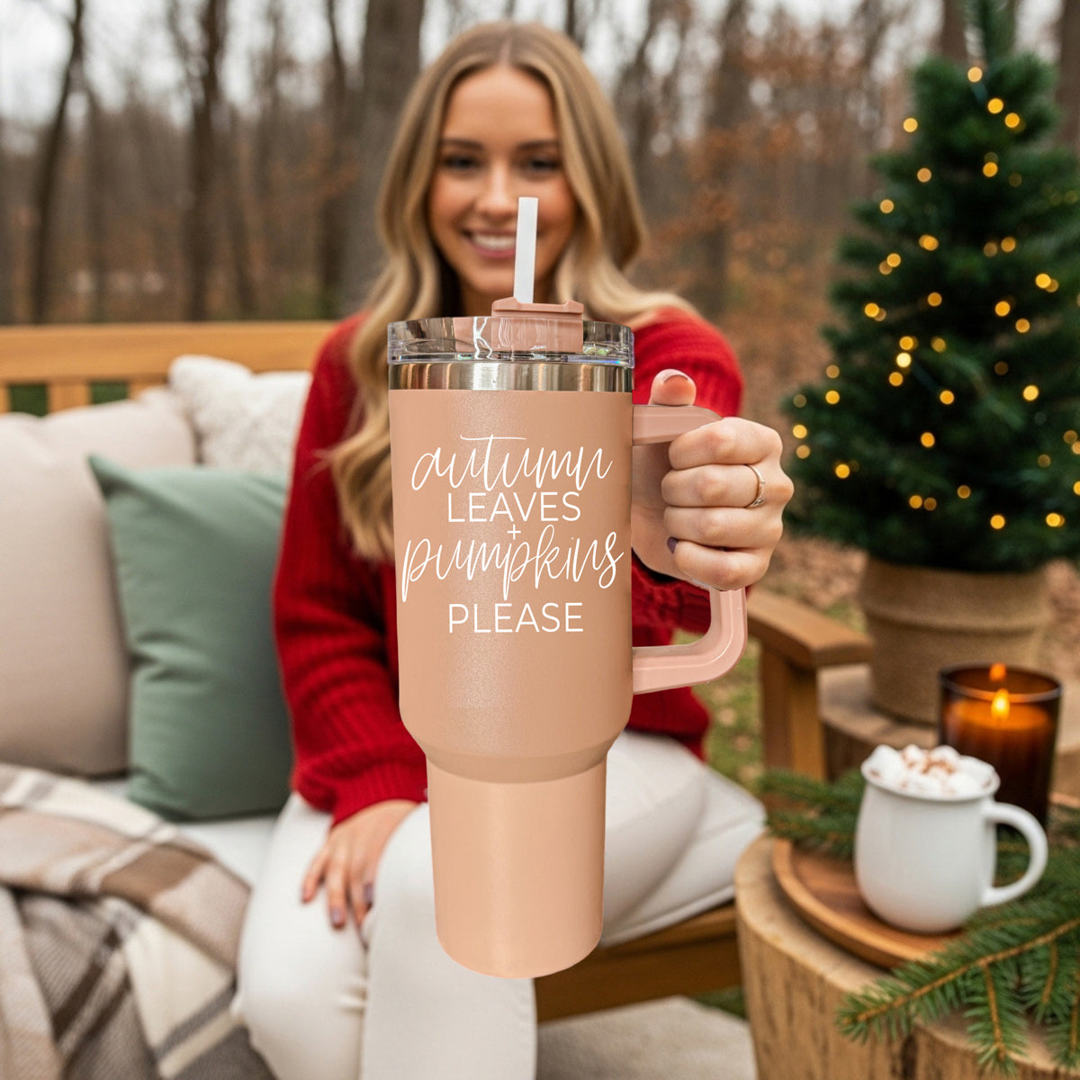 Introducing theย "Autumn Leaves + Pumpkins Please" 40oz Tumbler โ the perfect vessel for embracing all the cozy vibes of fall in one sip! ๐๐