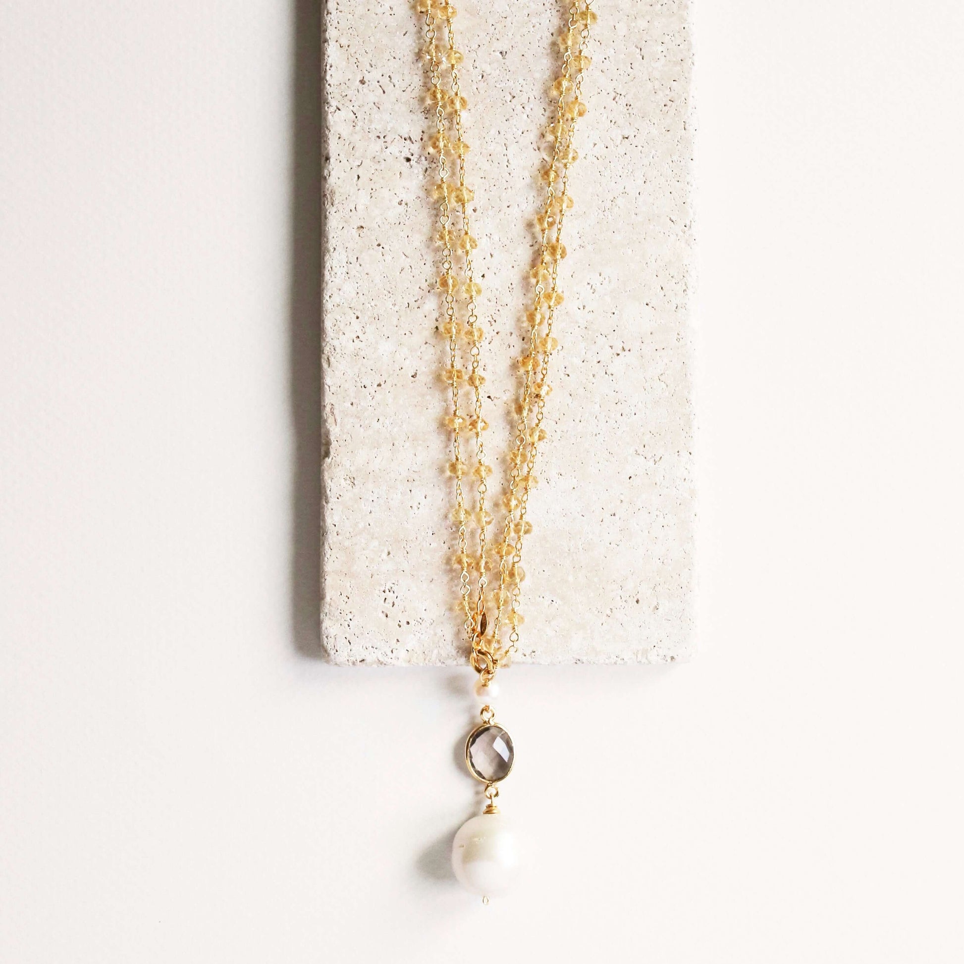 Necklace can be worn at it's full length of 34", or can be converted to a double strand 16" pendant.