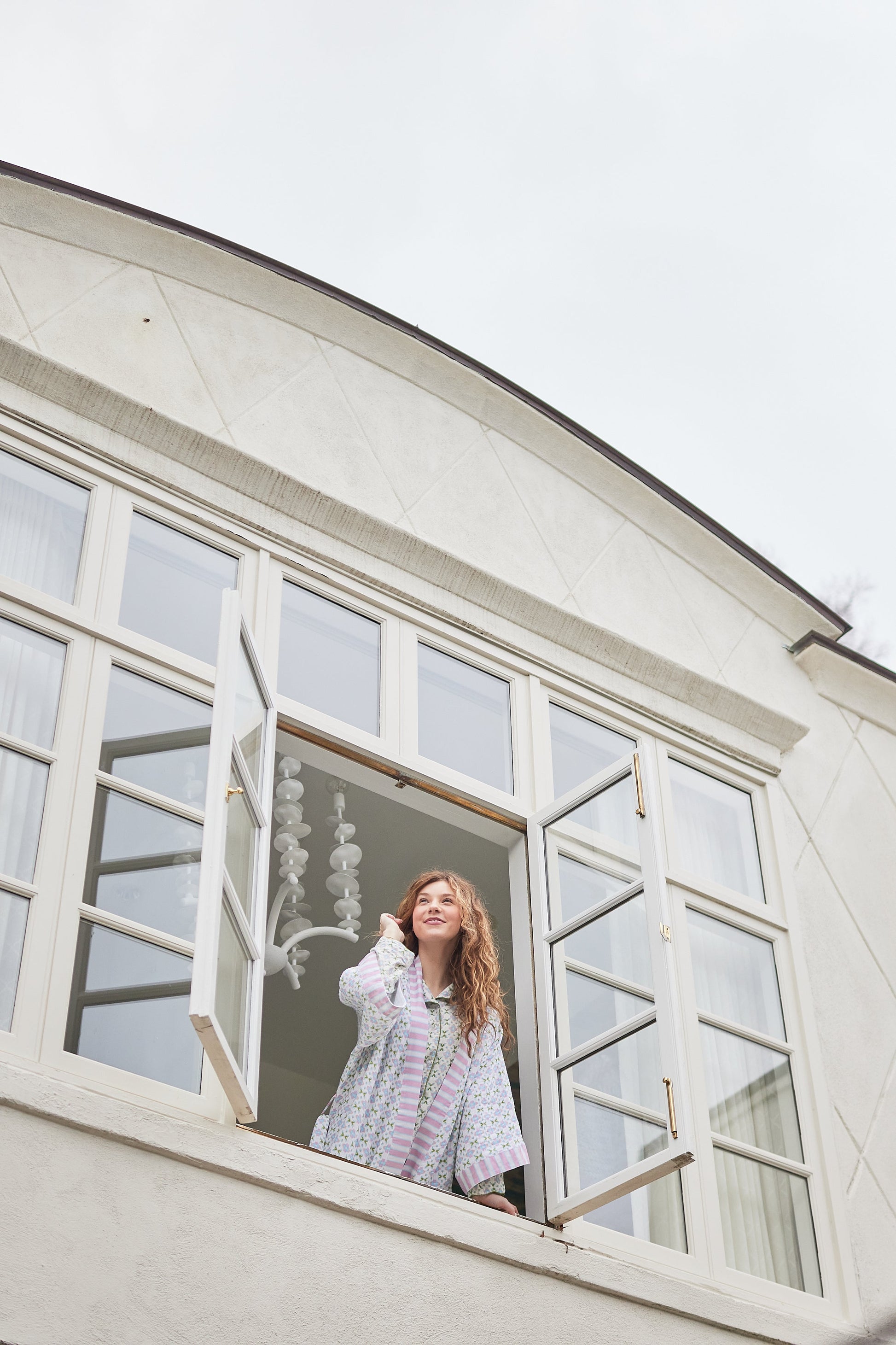 Wrap yourself in color and comfort. Crafted from 4 layers of cotton muslin, this bathrobe is meant for lounging in luxury. Toss it on to run and grab the morning paper or sling it over your shoulders as you powder your cheeks for the day.