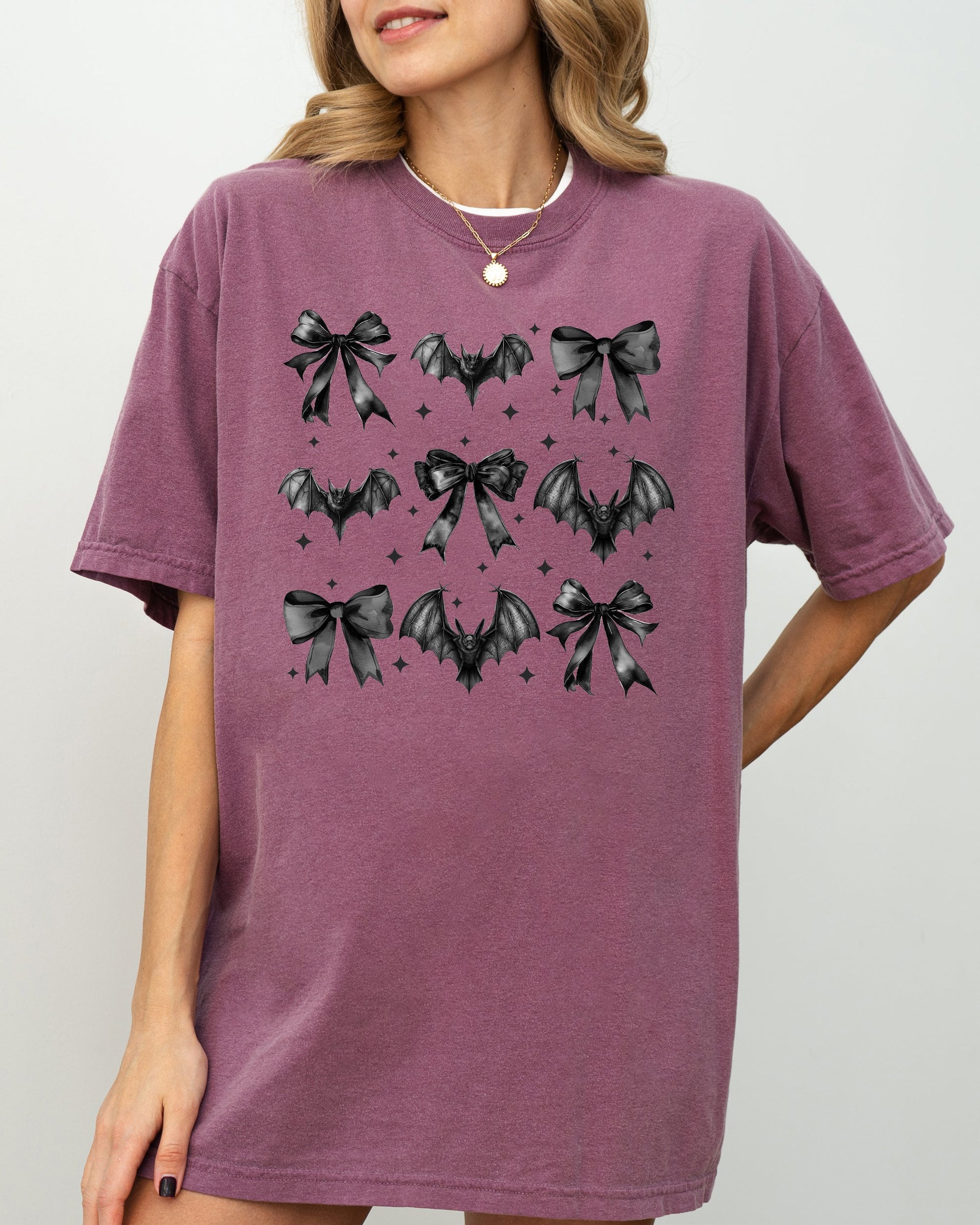 Bats, Black Bows, Vampire, Coquette, Ribbons, Halloween, Lace, Gothic, Spooky, Scary, Fangs Shirt Comfort Colors T-Shirt