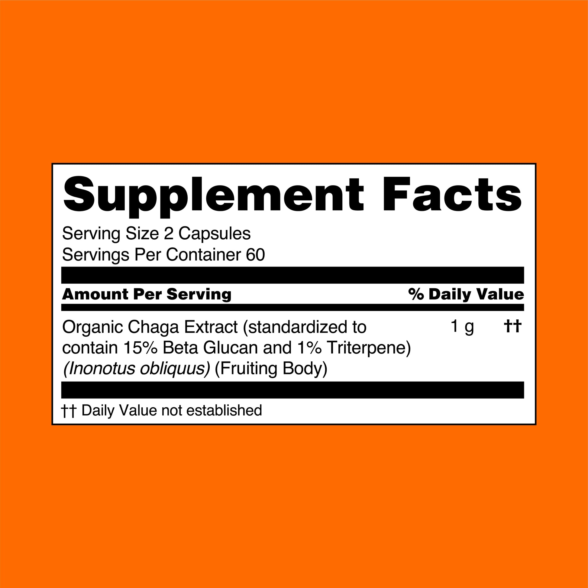 Premium Chaga mushrooms capsules for immune and antioxidant support. Dual-extracted for maximum potency, delivering 14,000mg raw mushroom power for comprehensive wellness.