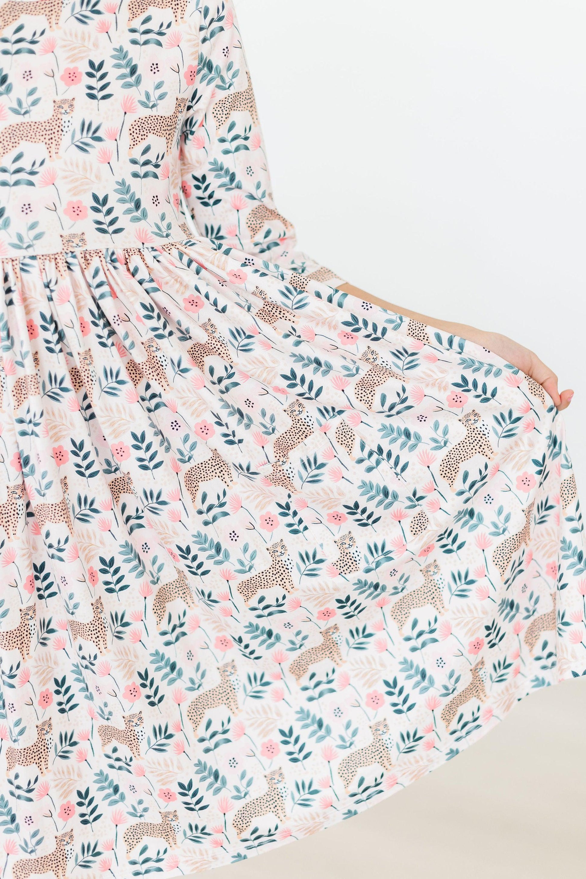Cheetah Girl 3/4 Sleeve Twirl Dress with Pocket