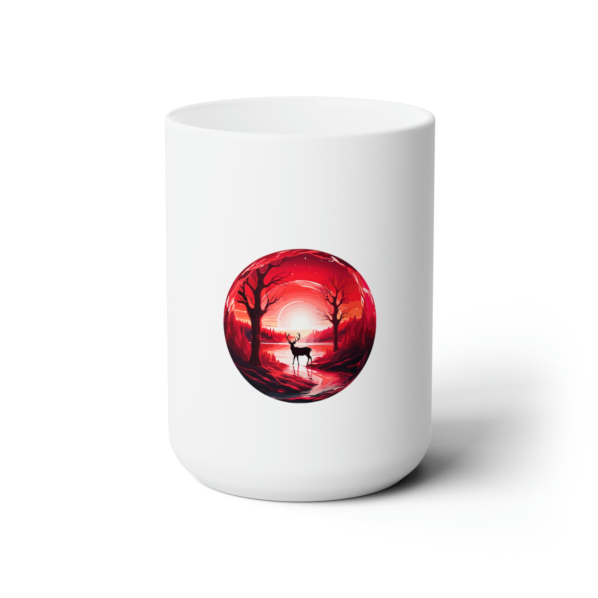 Bright red light in the snow with reindeer and Christmas tree design Ceramic Mug 15oz