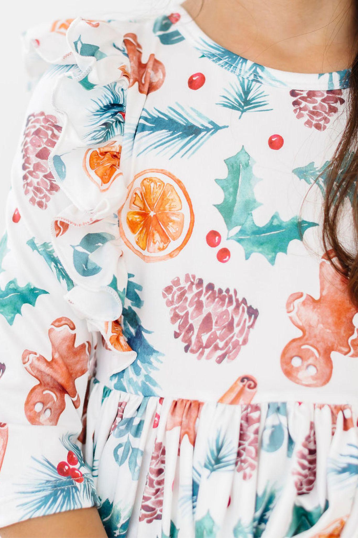 Classic Christmas 3/4 Sleeve Ruffle Twirl Dress Mila & Rose