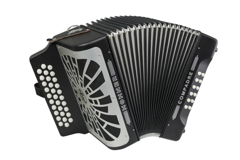 Part of Hohner's Música Típica series, the Compadre diatonic accordion is perfect for Latin folk styles like Norteño, Tejana, and Vallenato, as well as European folk, Americana, and rock. Featuring 31 treble buttons, 12 bass buttons, and two voices per button, this accordion delivers a crisp, full sound that resonates beautifully. Ideal for beginners thanks to its accessible price, the Compadre also offers the vibrant tone and quality craftsmanship that seasoned players will appreciate. A versatile choice for musicians at any level.