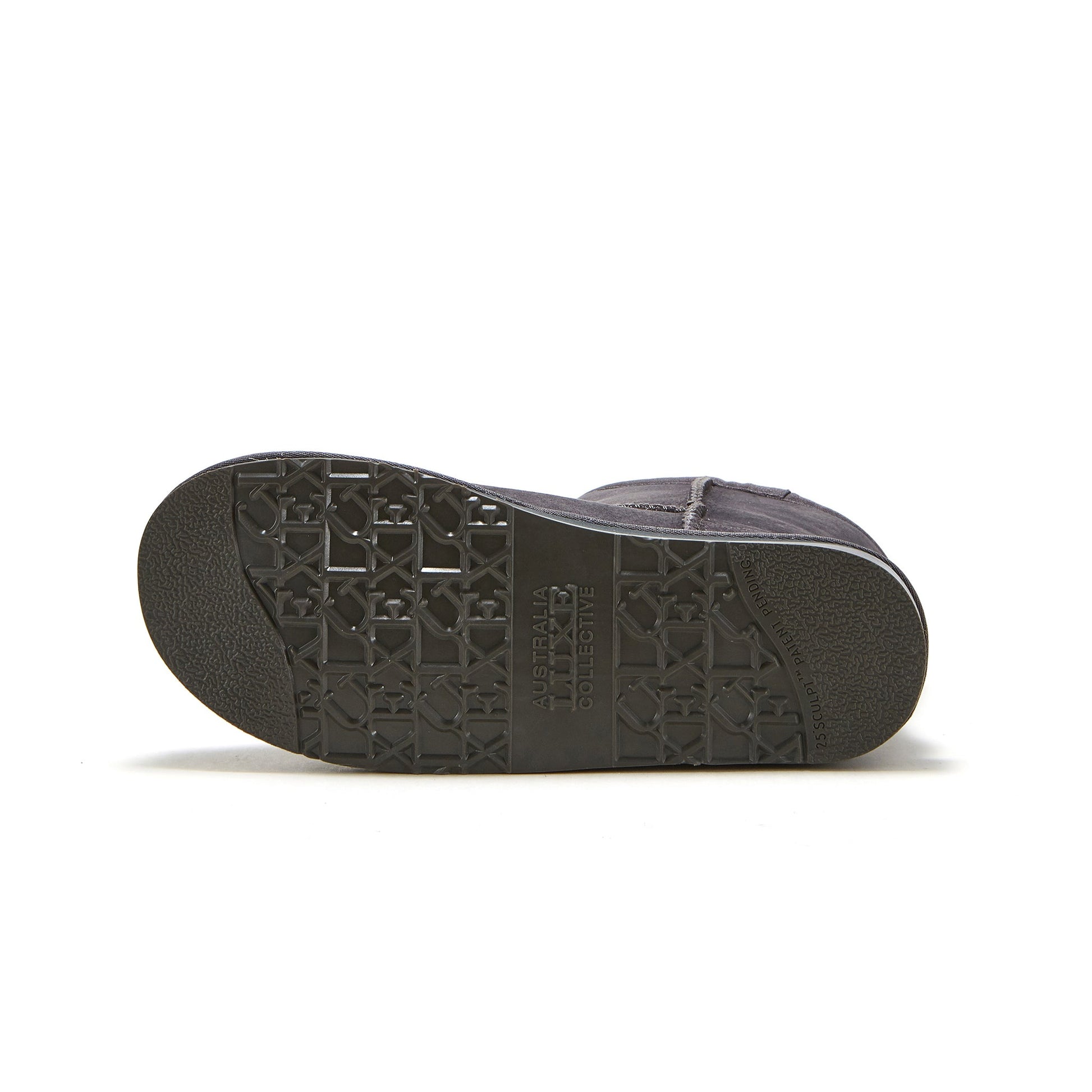 The COSY short antique silver is a pull-on sheepskin boot with a below-calf height, designed with a scoop front silhouette. Made from soft metallic antique leather, it provides comfortable and casual wear for everyday use.