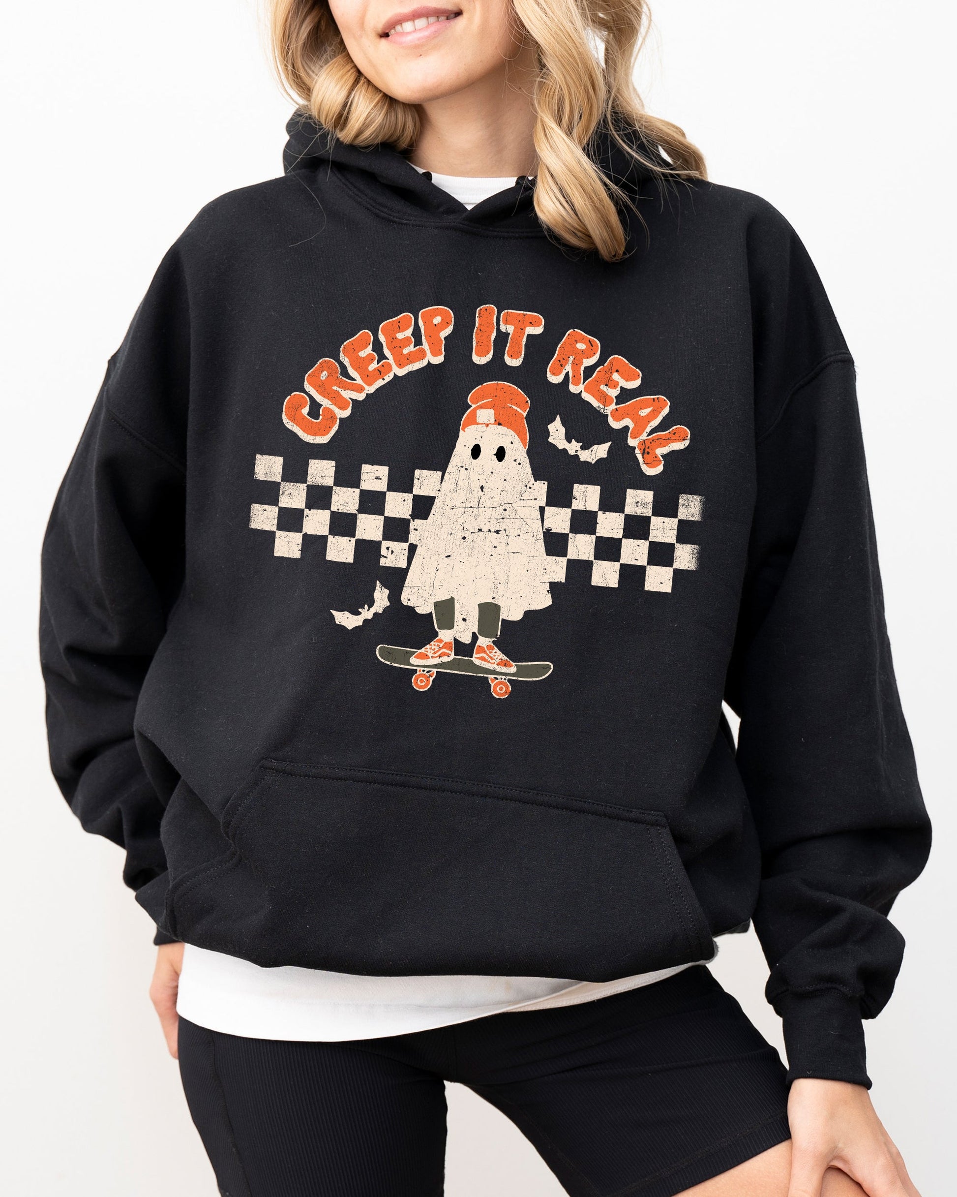 Ghost Retro Spooky Halloween Costume Hoodie Hooded Sweatshirt Creep It Real