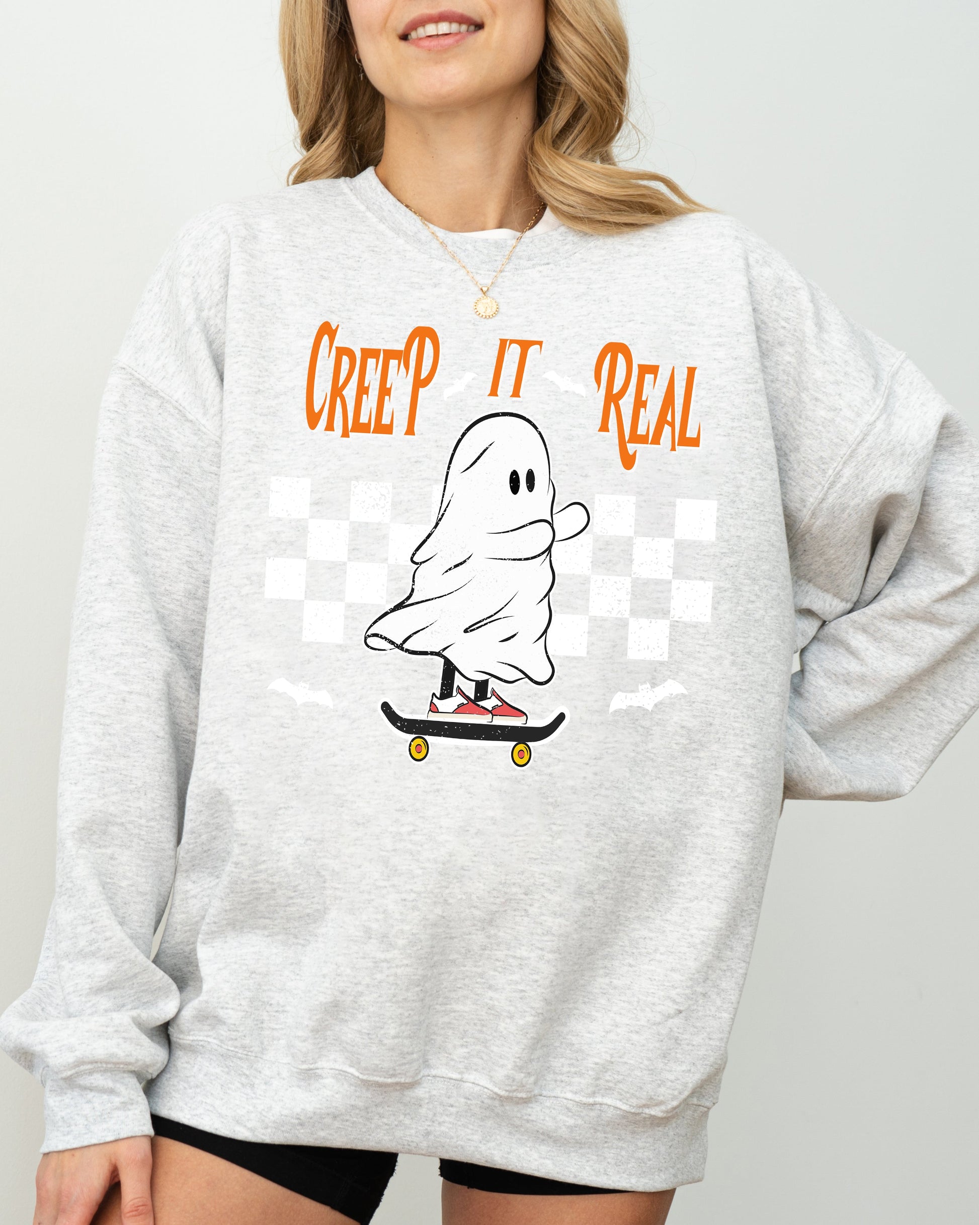 Creep It Real Ghost Skeleton Funny Spooky Witch Halloween Costume Sweatshirt