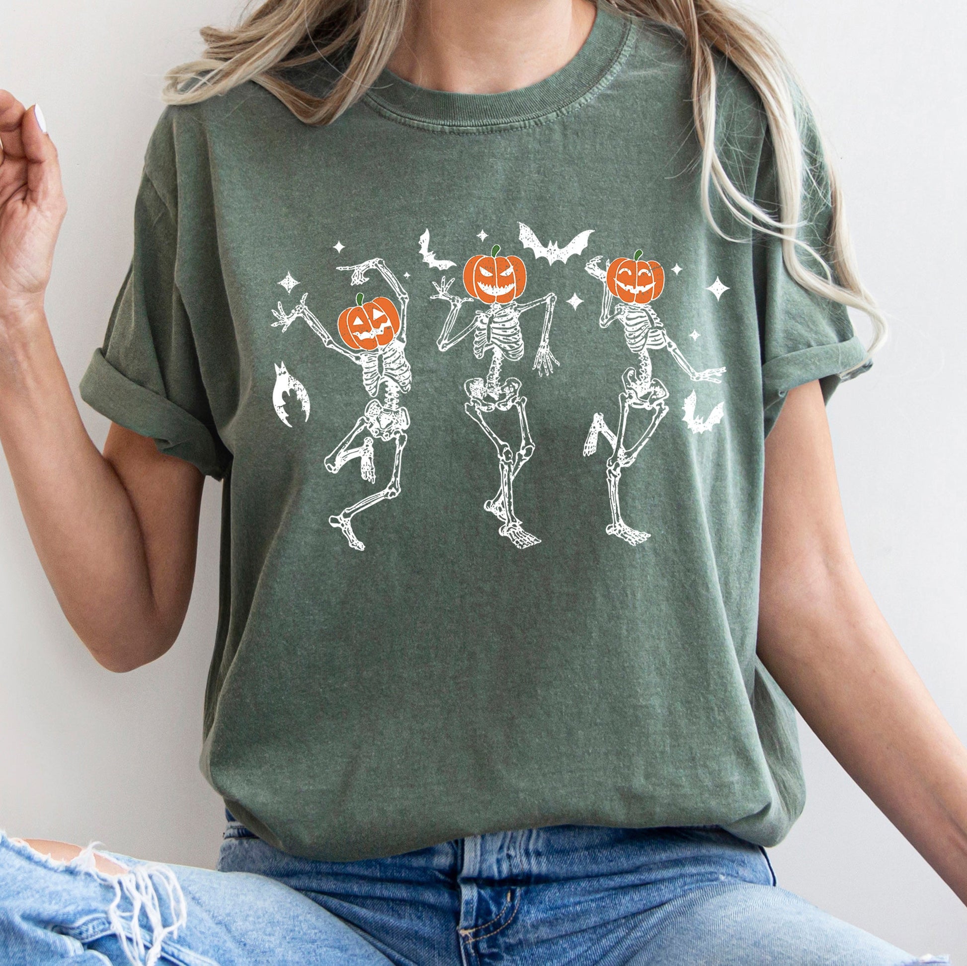 Halloween T-shirt Retro Shirt Comfort Colors Pumpkin Skeleton Unisex Tee Dancing Pumpkin Skeletons T-shirt Retro Halloween Comfort Colors Tee Vintage style Halloween shirt Ring-spun cotton Halloween tee Eco-friendly Halloween clothing