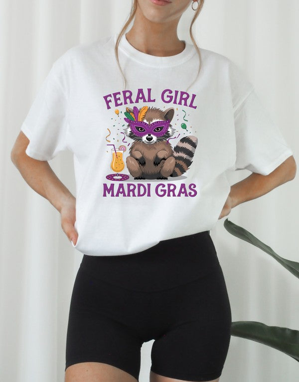 Feral Girl Mardi Gras Graphic Short Sleeve Tee