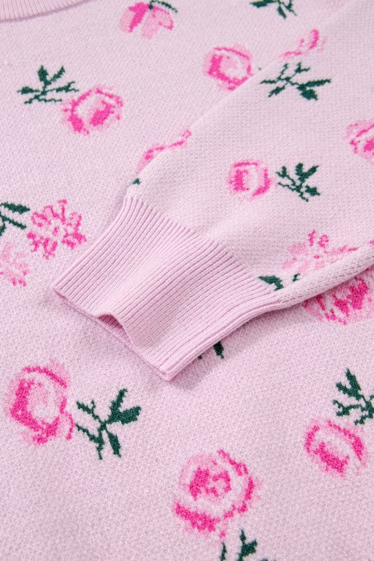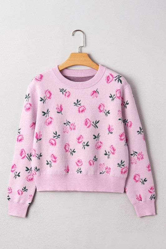Floral Drop Shoulder Cropped Sweater Relaxed Fit Sweater