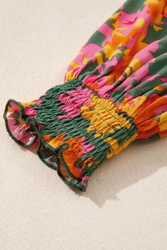 Floral Smocked Long Sleeve Mini Dress with Ruffle Hem