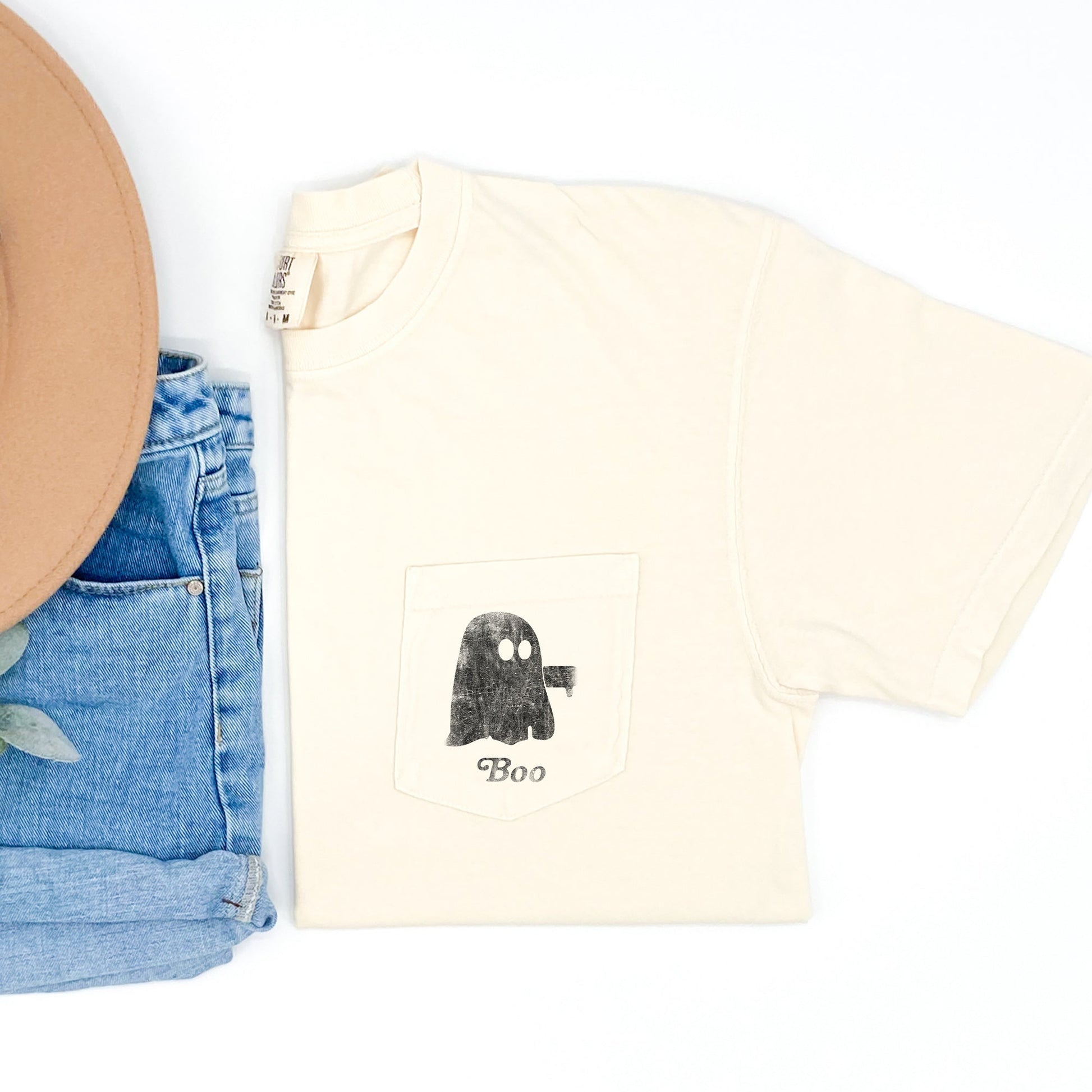 Ghost Arms Crossed Halloween Pocket Comfort Colors Tshirt