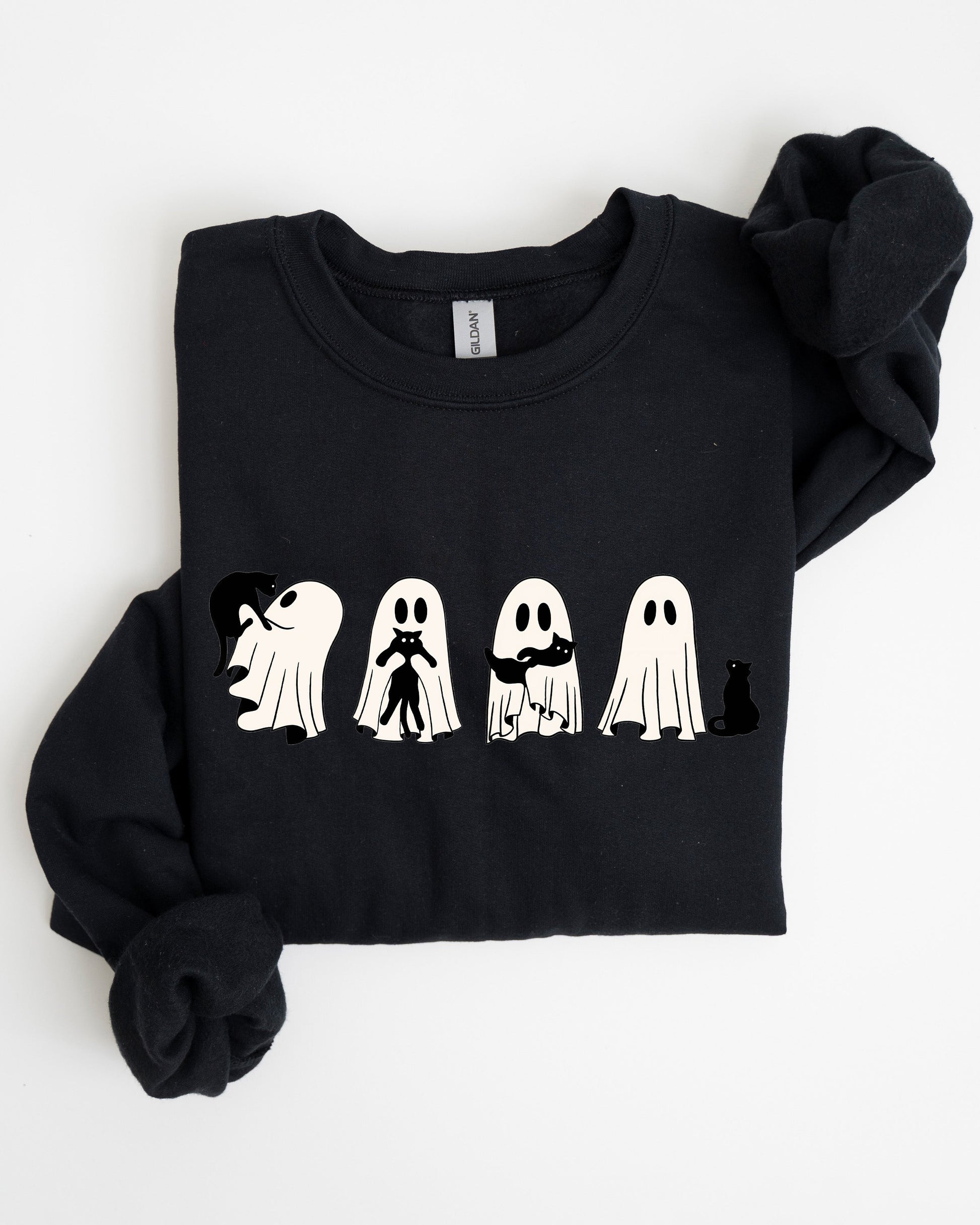 sweatshirt Halloween ghost cats unisex cotton blend Halloween trick or treat sweatshirt cotton polyester blend sweatshirt unisex Halloween sweatshirt ghost cat graphic sweatshirt festive autumn clothing