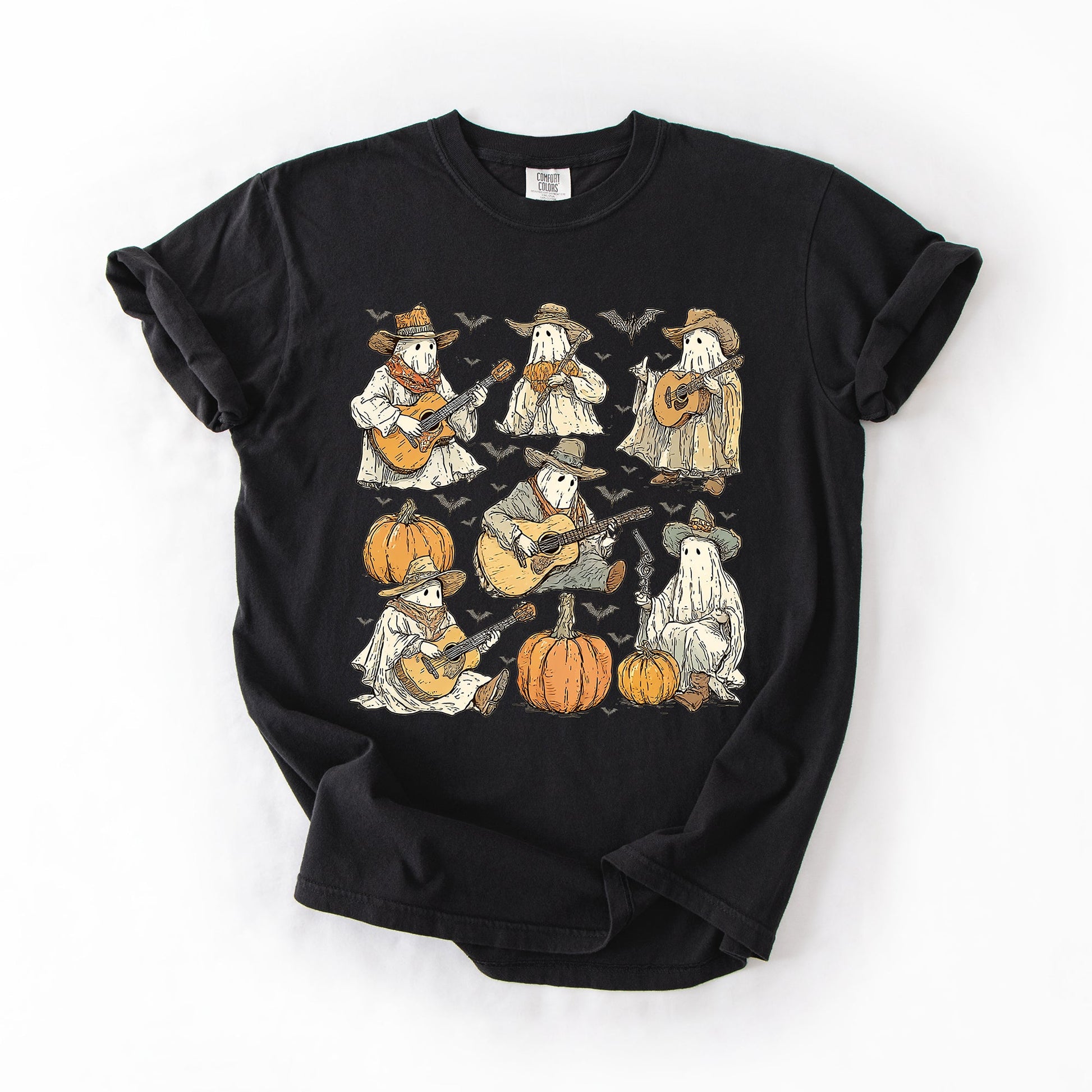 Halloween t-shirt ghost cowboy bats Halloween comfort colors t-shirt ghost cowboy halloween shirt spooky bats graphic tee casual halloween t-shirt breathable fabric halloween tee refinery number one shirt