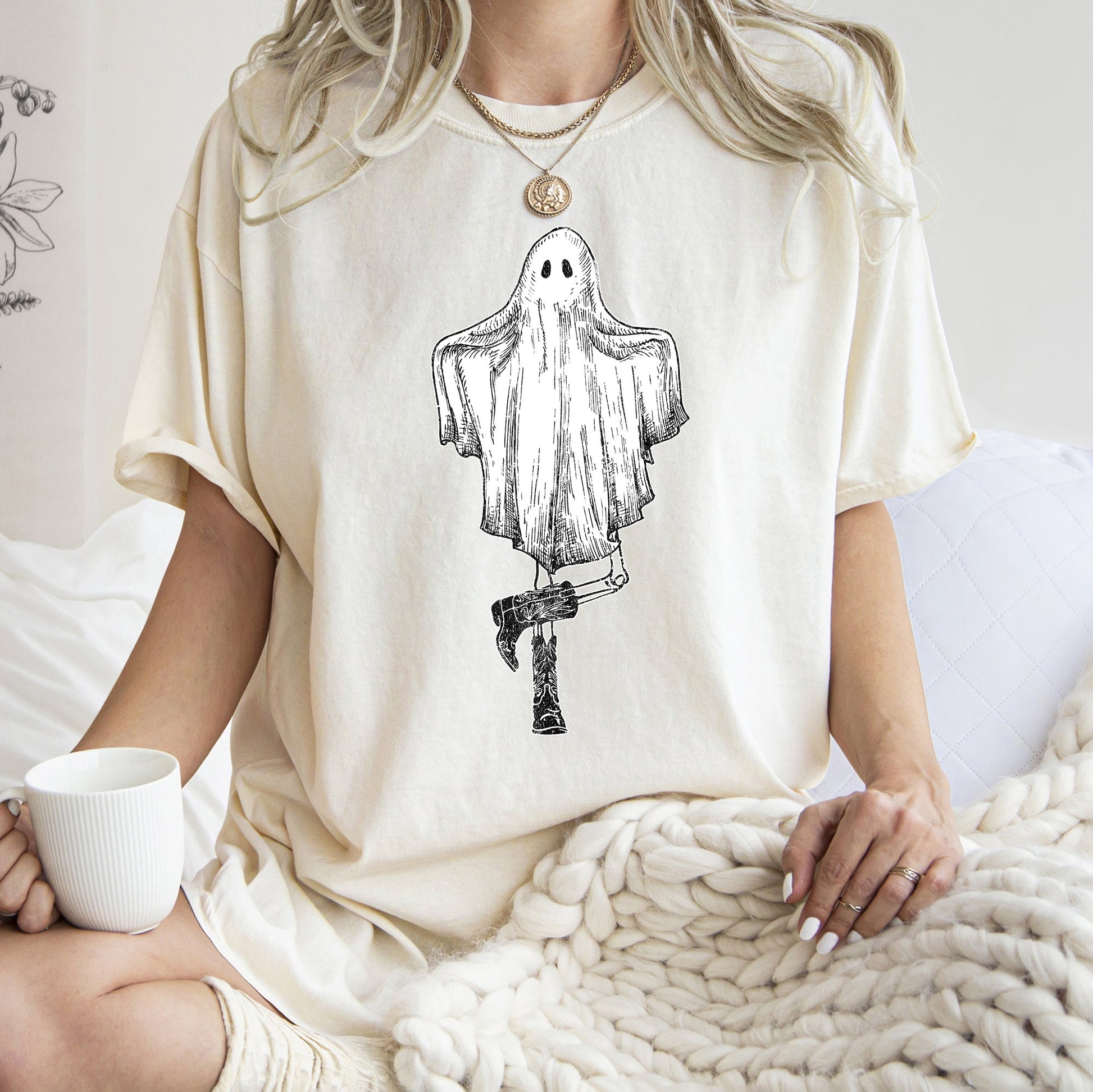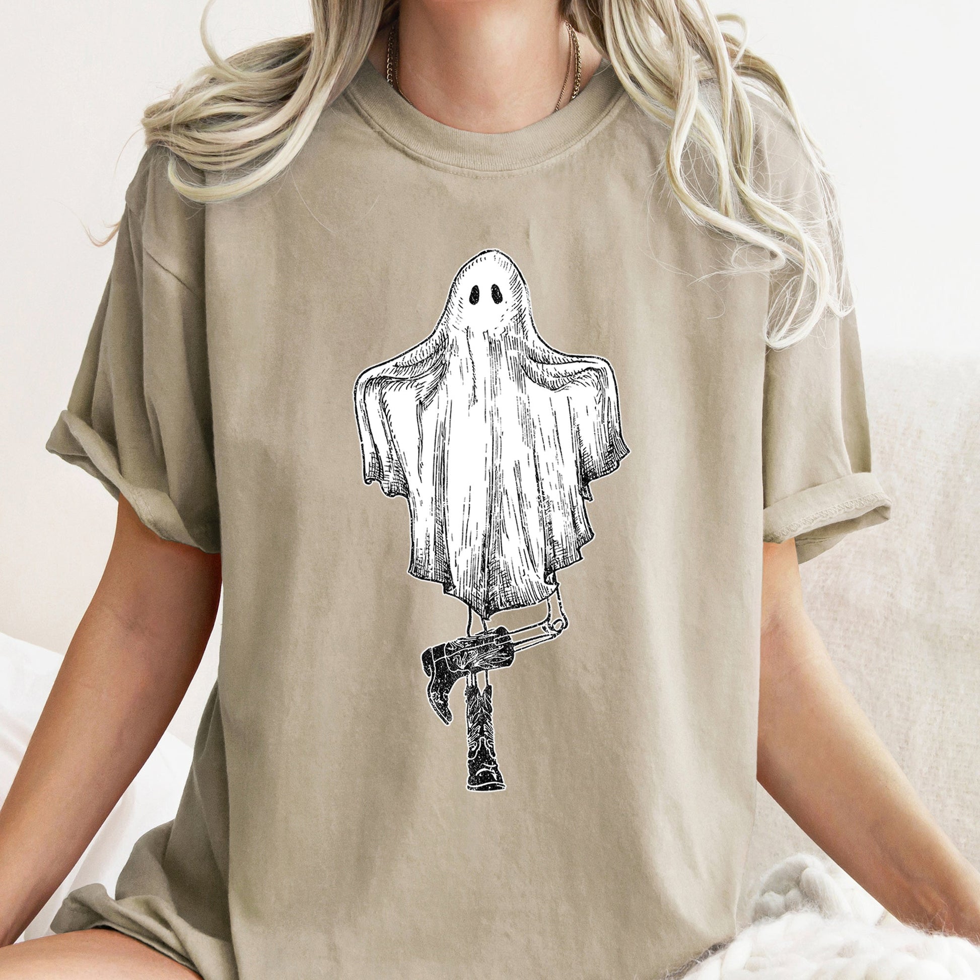 Halloween shirt vintage tee comfort colors retro shirt cotton t-shirt unisex tee ghost shirt western tee soft cotton eco-friendly tee Ghost In Boots Halloween T-shirt retro western Halloween tee comfy ring-spun cotton shirt vintage style Halloween shirt unisex cotton Halloween tee eco-friendly Halloween t-shirt
