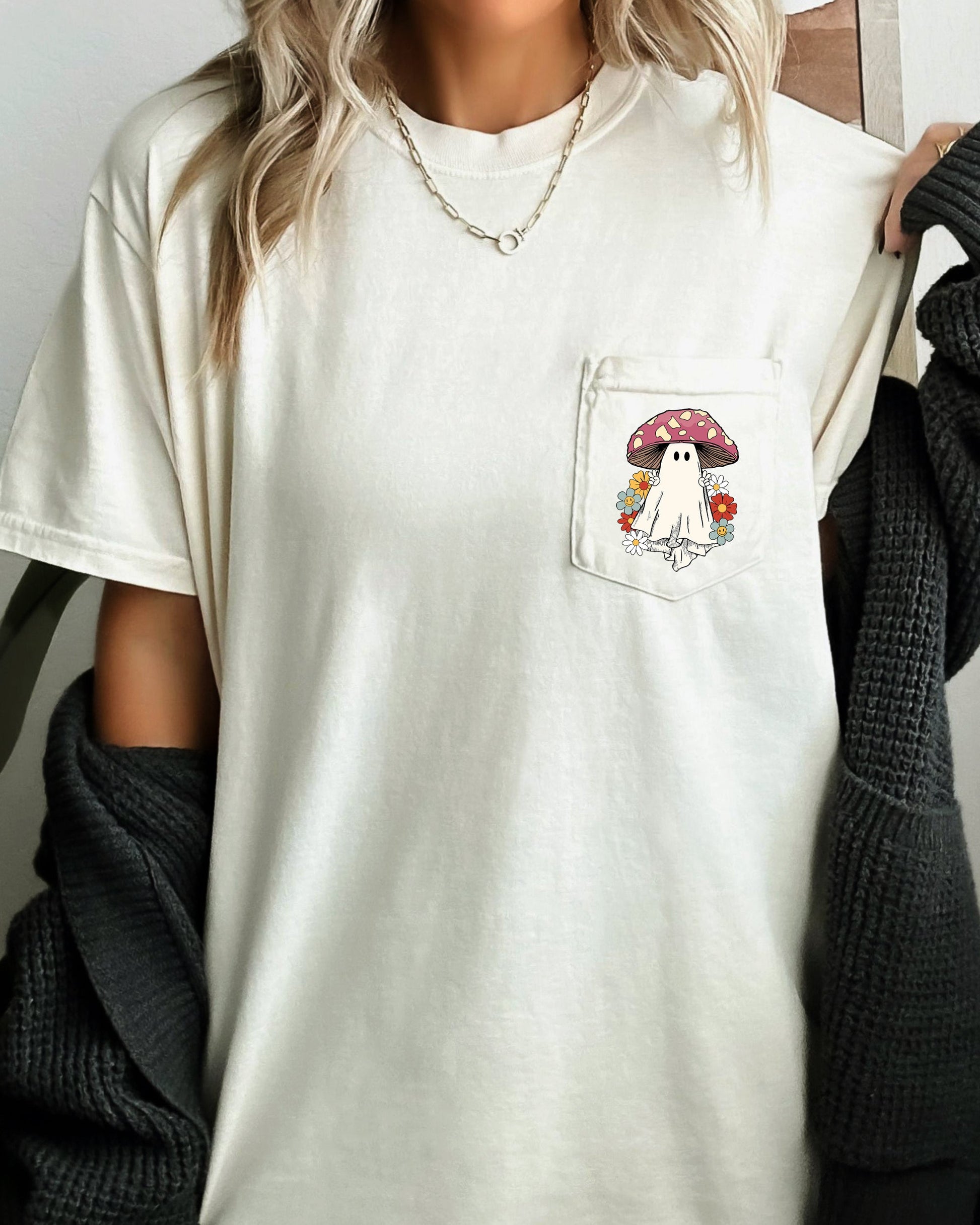 Ghost Mushroom Halloween Pocket Tee Comfort Colors T-Shirt
