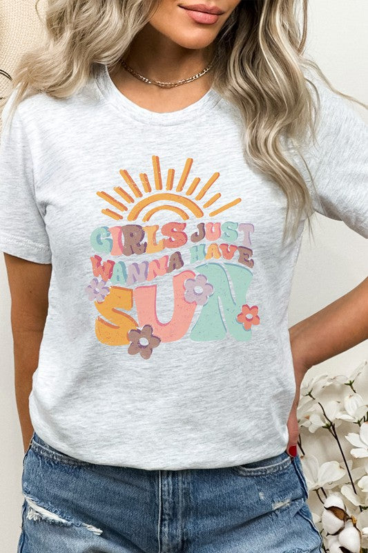 Girls Just Wanna Have Sun Summer Graphic Tee Cotton Blend T-Shirt Kissed Apparel