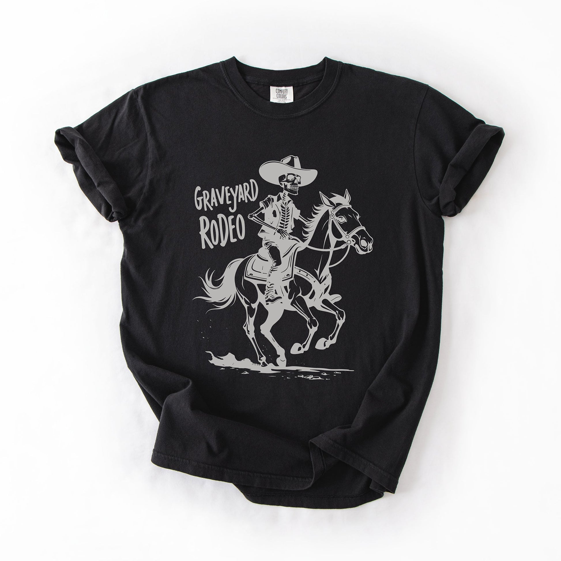 Halloween Cowboy Skeleton Comfort Colors T-Shirt Graveyard Rodeo