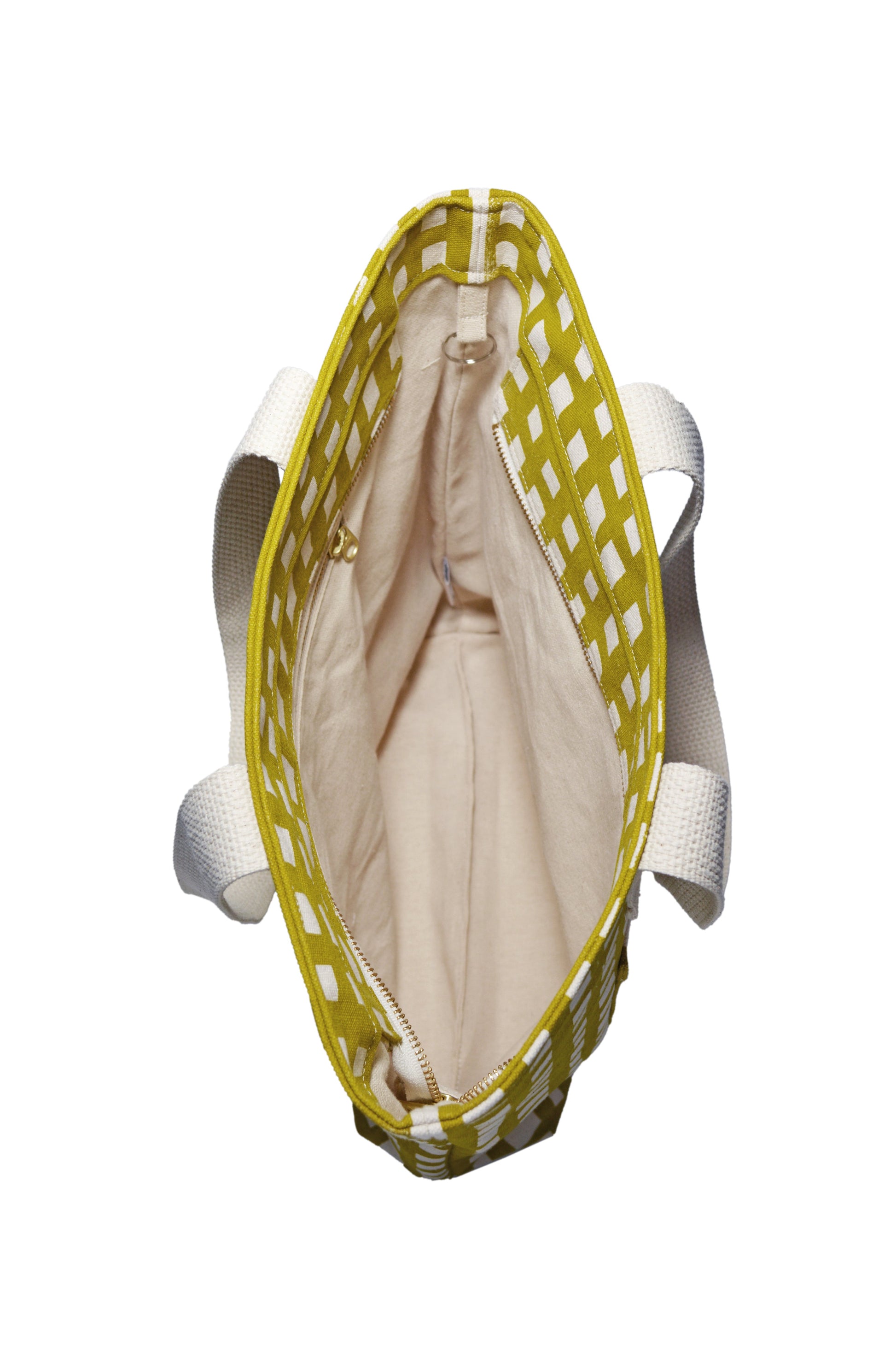 Grid Carry All Tote Cotton Canvas Zip Top Tote Bag