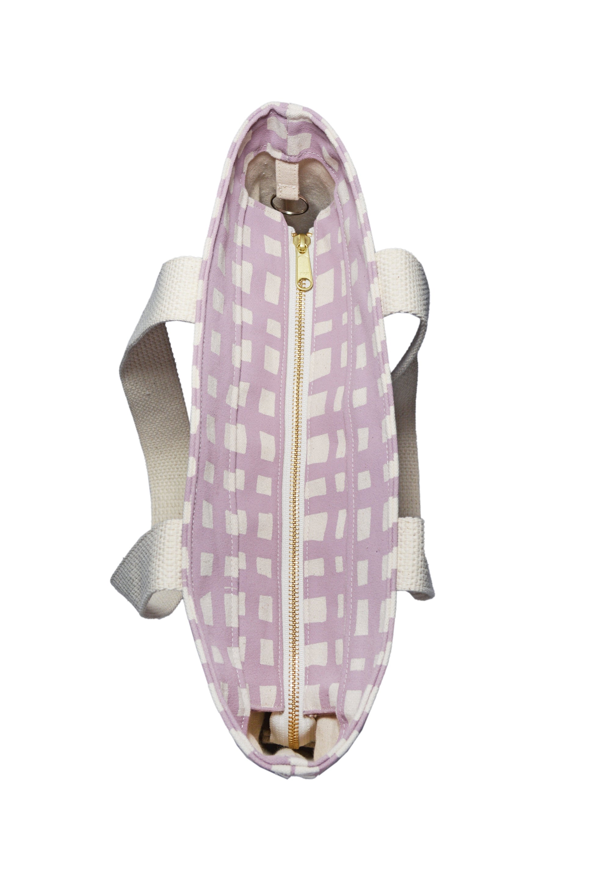 The Grid Carry All Tote is a zip top tote bag made from durable 15 oz cotton canvas. It is designed for busy women who need an organized everyday bag. It features a large exterior pocket, an interior zip pocket, and a built-in key ring for easy access to essentials. The tote comfortably fits laptops, notebooks, and other daily items without bulk and has a 10 inch handle drop for comfortable carrying. Fully lined and handmade in the USA, this tote is machine washable and suitable for daily use.