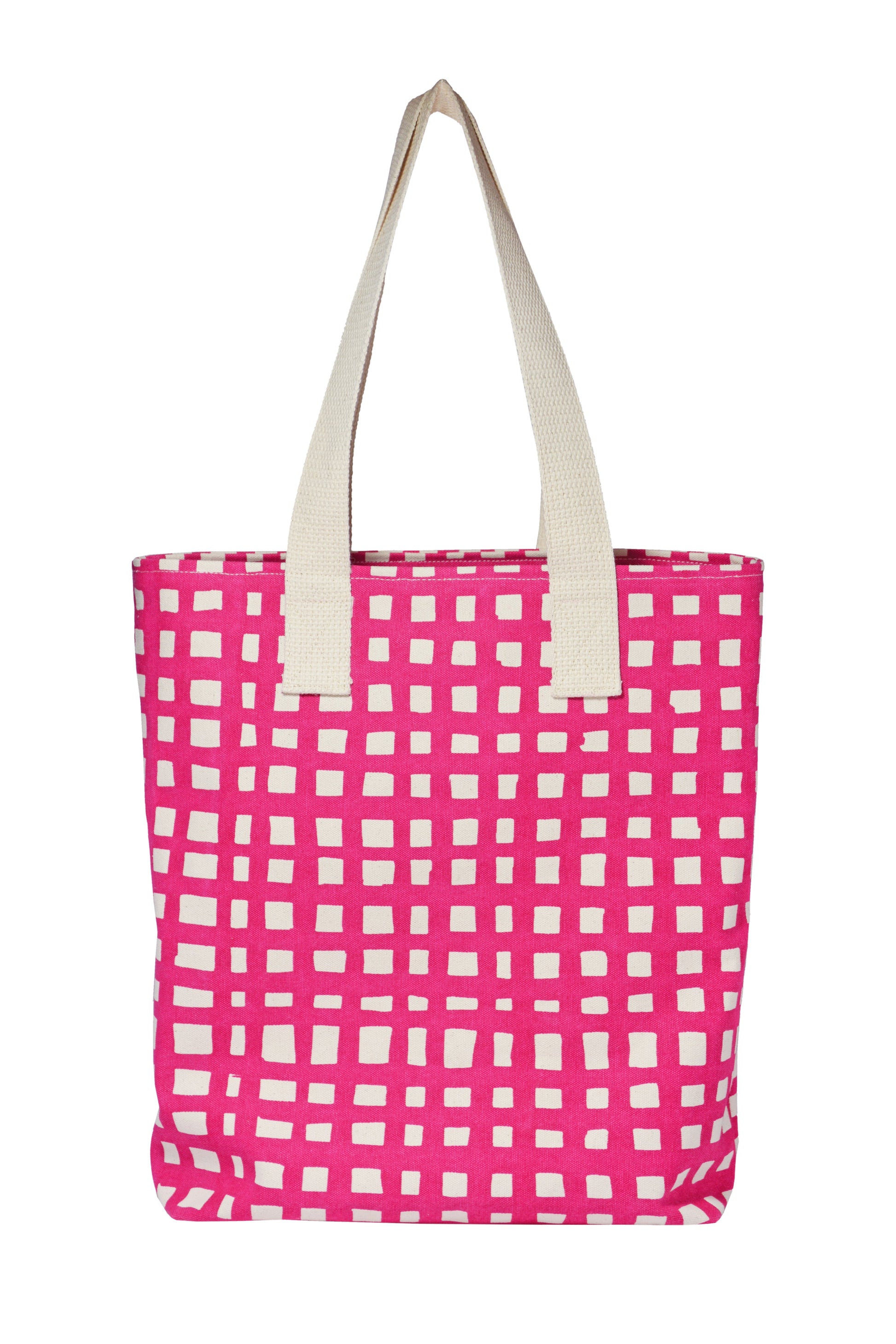 Grid Carry All Tote 15 oz Cotton Canvas Zip Top Tote Bag