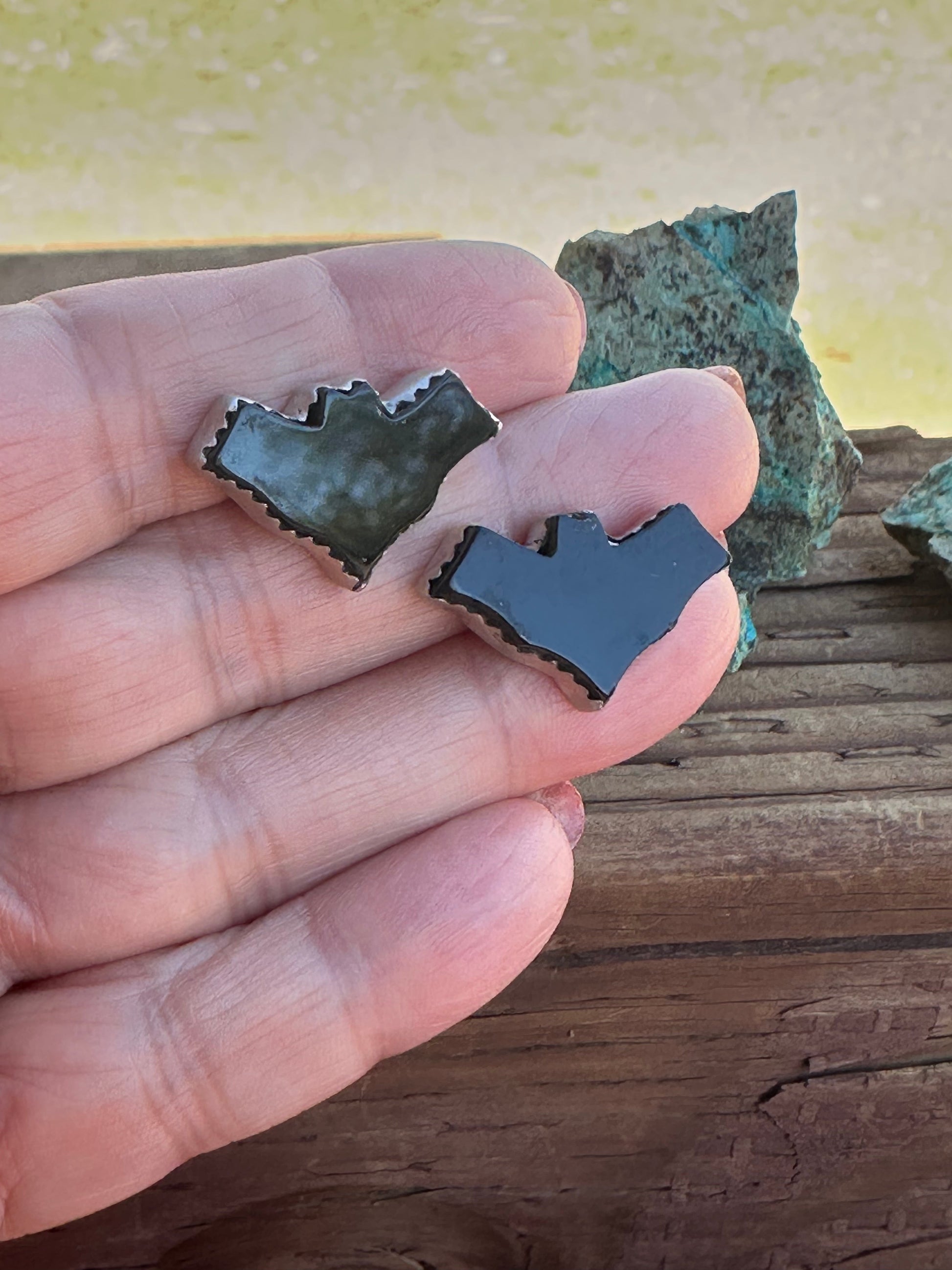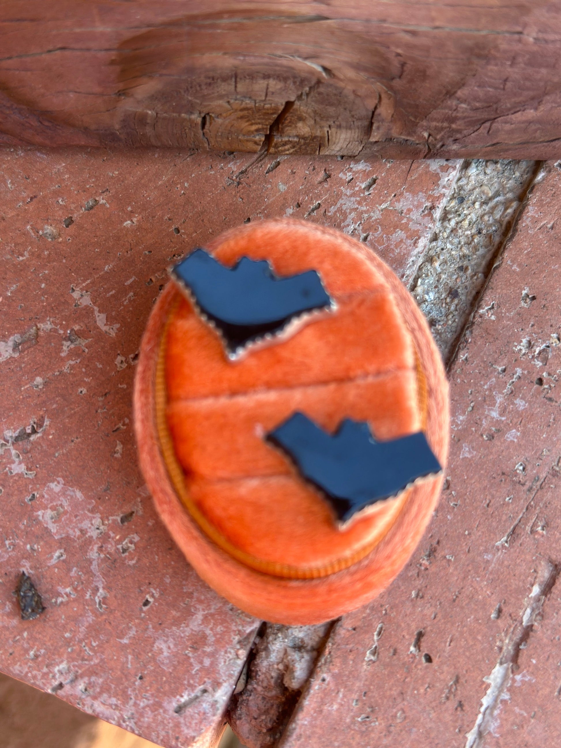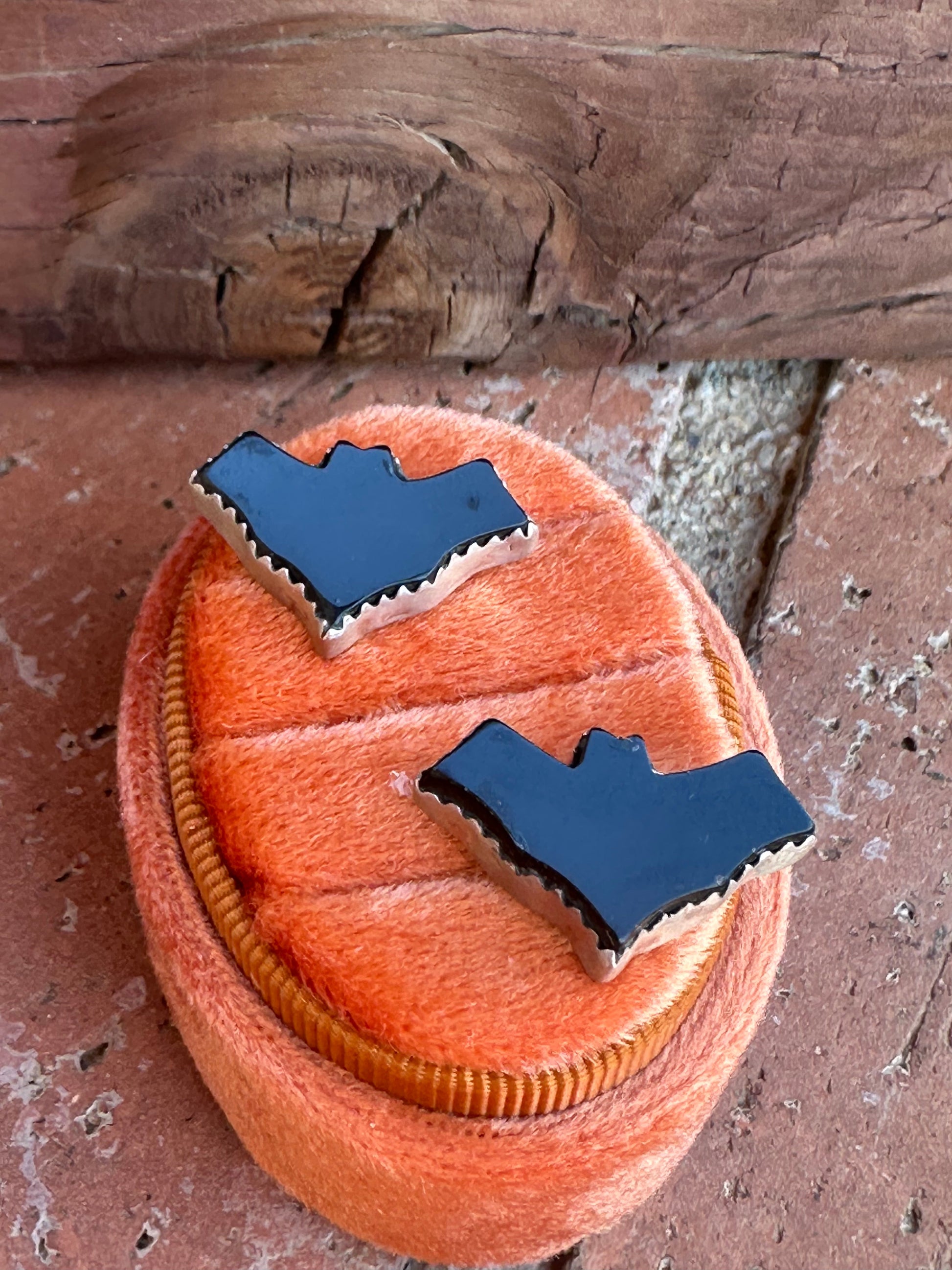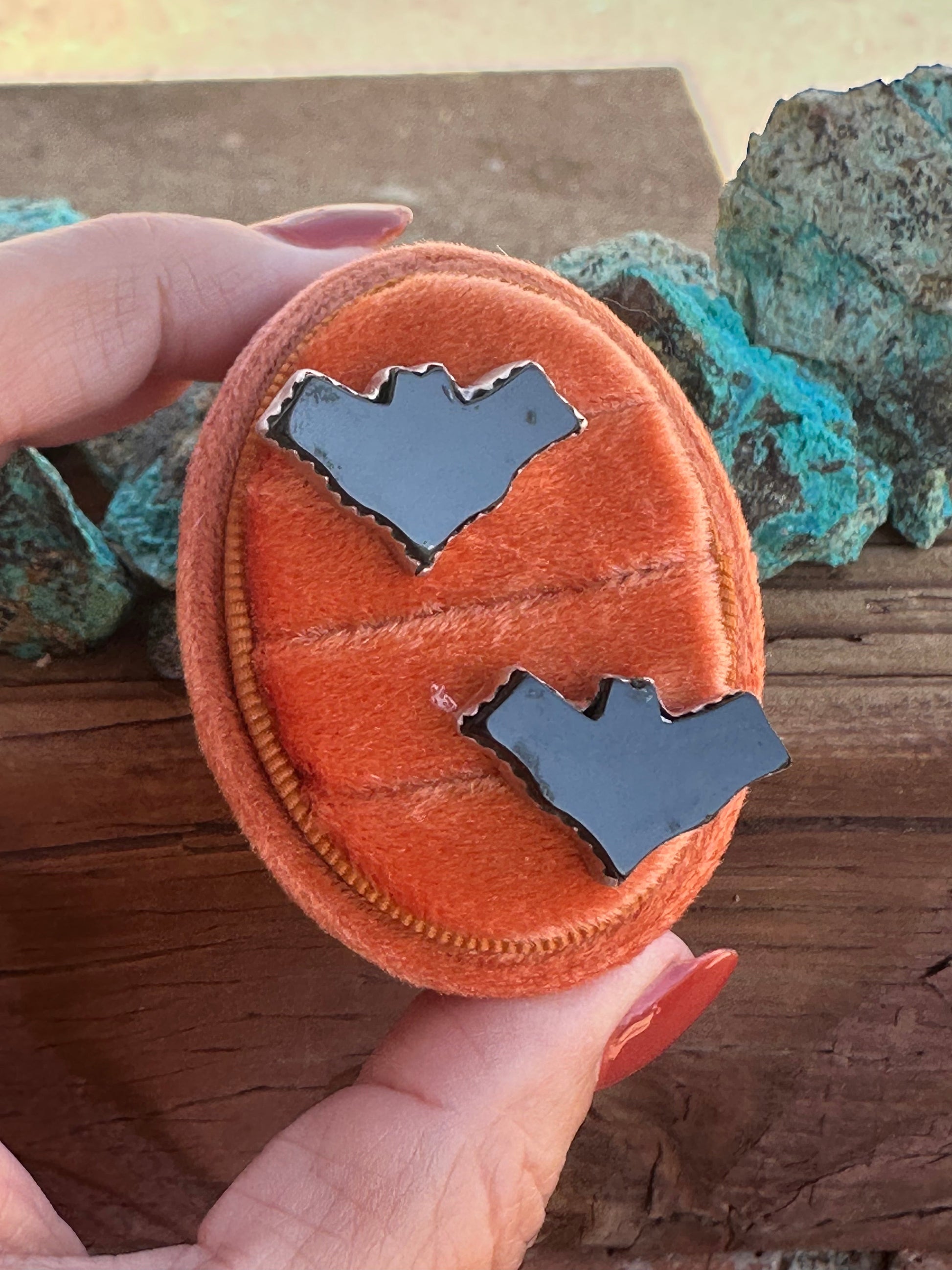 Sterling Silver and Onyx Bat Handmade Post Earrings Halloween Collection