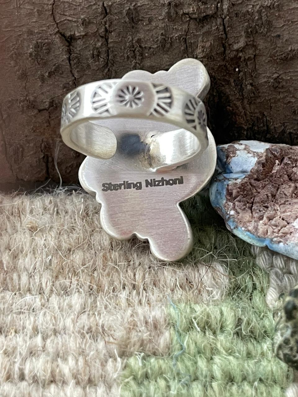 "Halloween Collection" Handmade Sterling Silver Black Onyx, Bumblebee Adjustable Ring with Signed Nizhoni