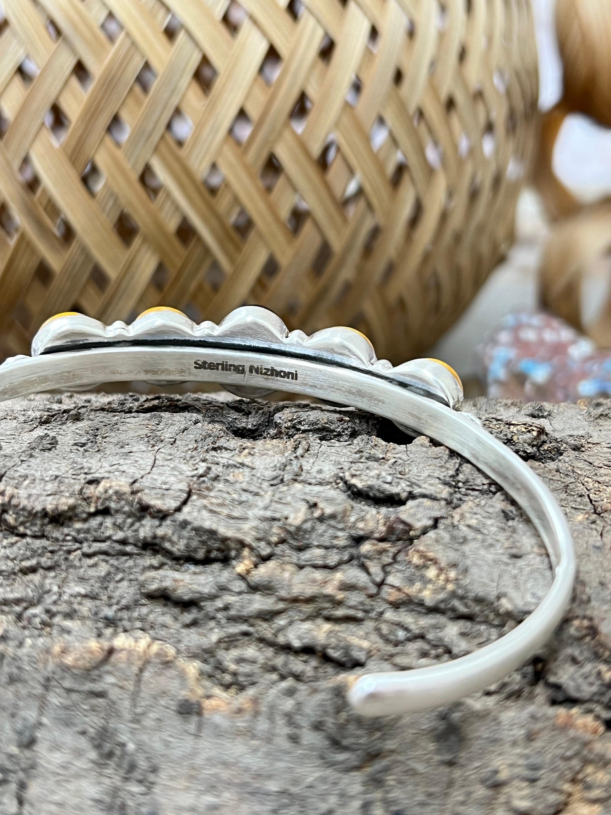 "Halloween Collection" Handmade Sterling Silver Black Onyx, Bumblebee Cuff Bracelet with Signed Nizhoni