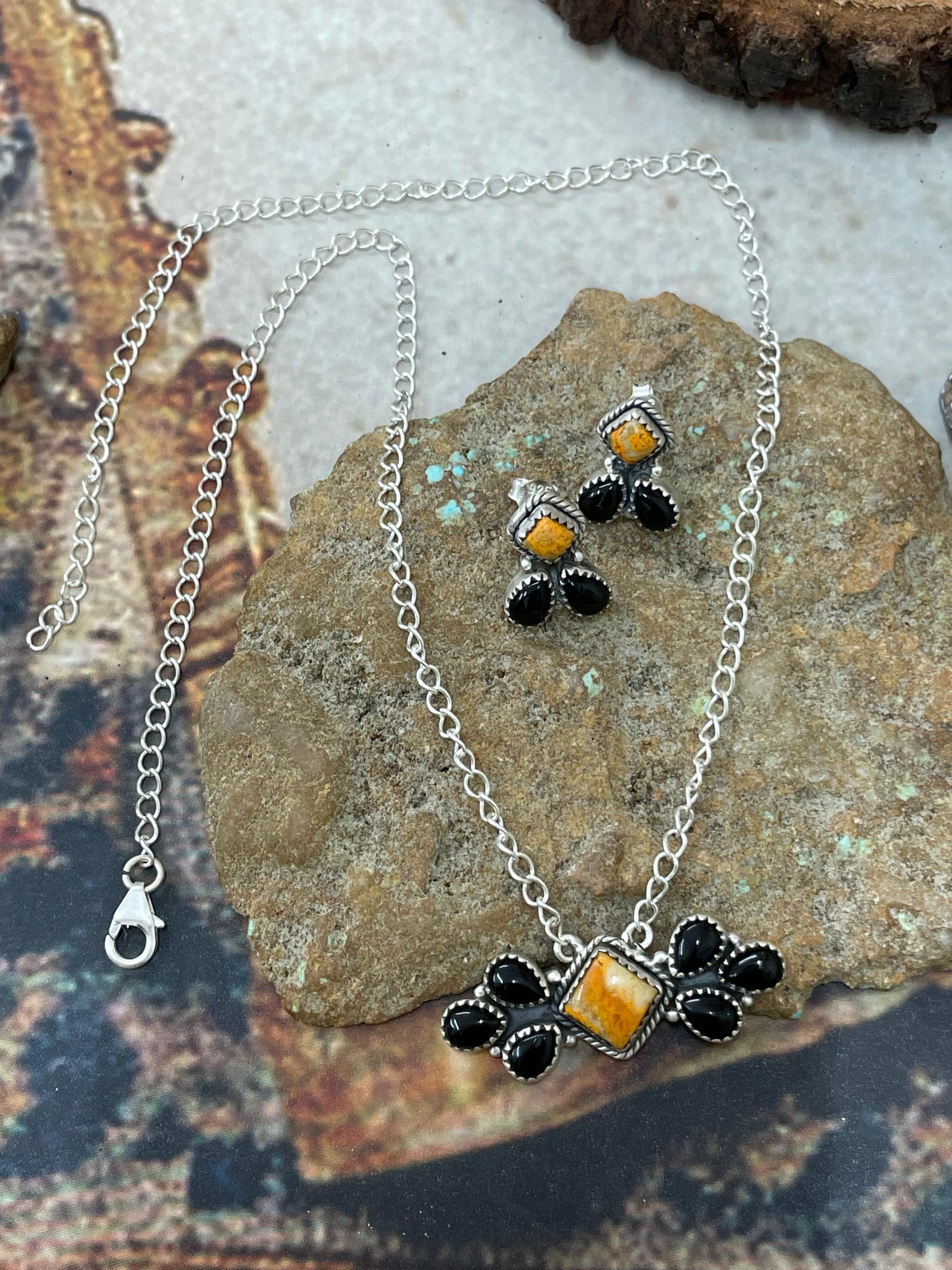 "Halloween Collection" Handmade Sterling Silver Black Onyx, Bumblebee Necklace with Signed Nizhoni