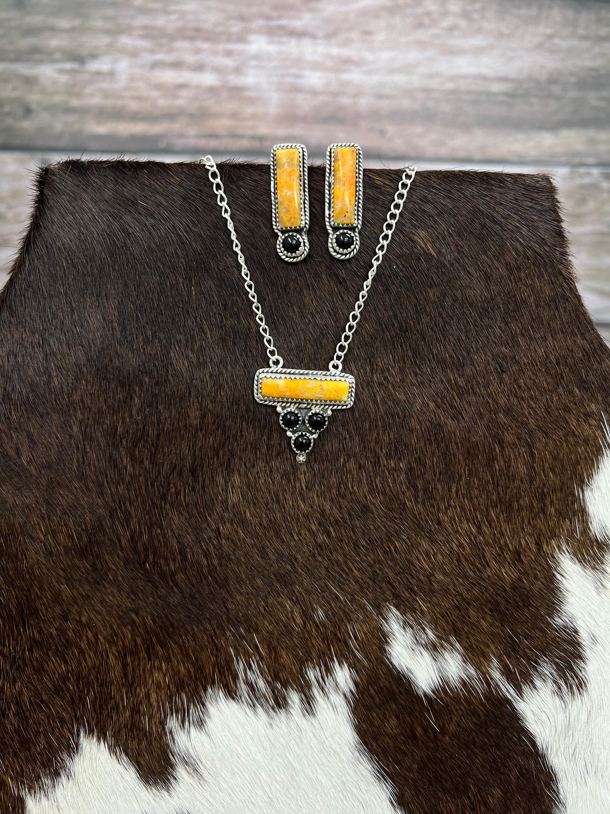 Beautiful Handmade Sterling Silver Black Onyx, Bumblebee Necklace and Earrings Set.