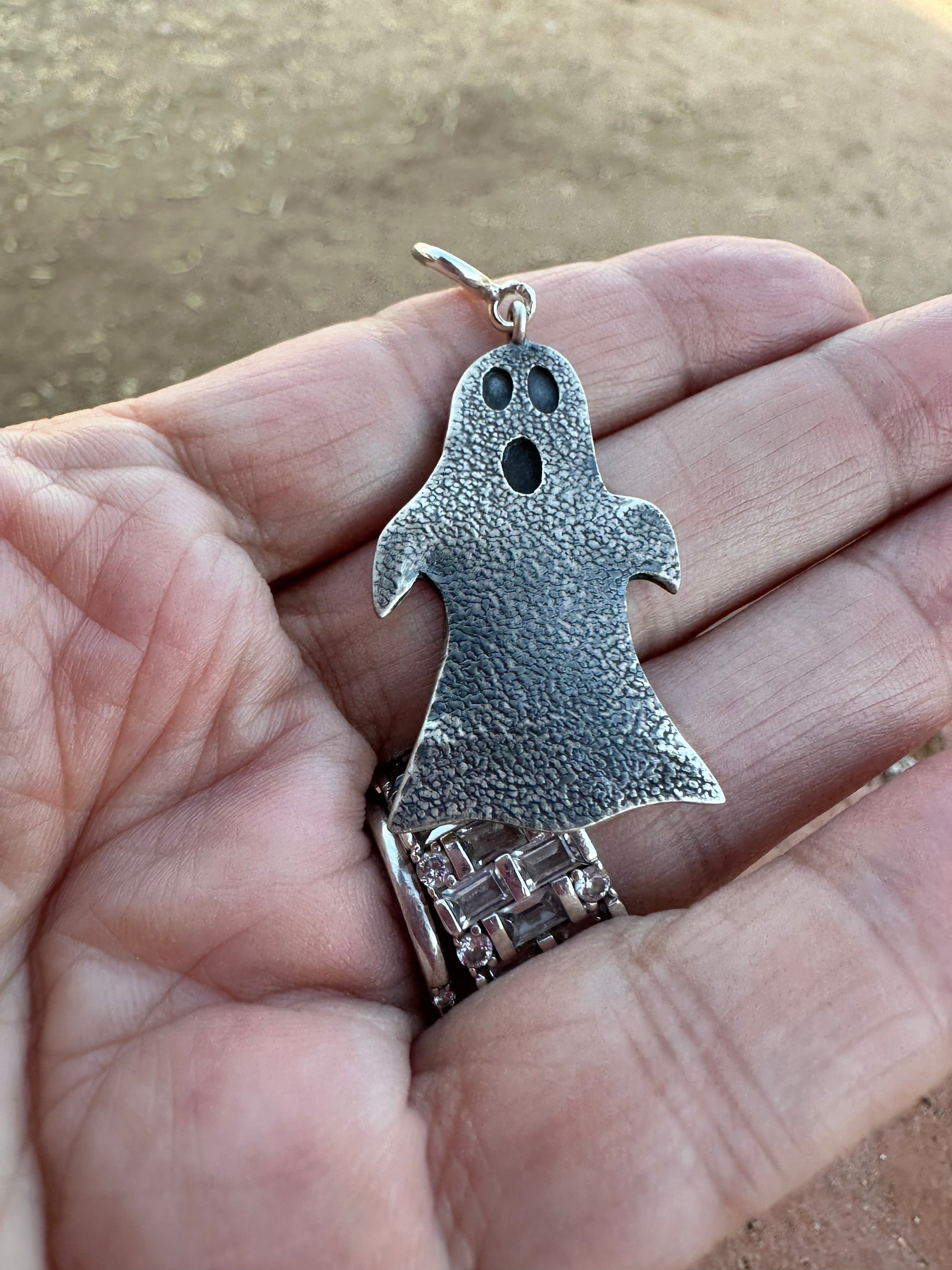 ghost charm sterling silver charm jewelry handmade charm halloween charm sterling silver ghost charm halloween collection charm hand stamped silver charm ghost charm for bracelets Nizhoni Traders LLC charm