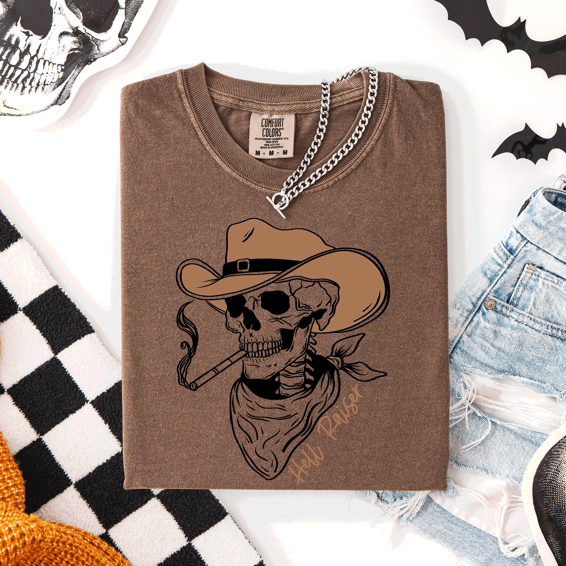 Skeleton Cowboy Comfort Colors Halloween T-Shirt Hell Raiser