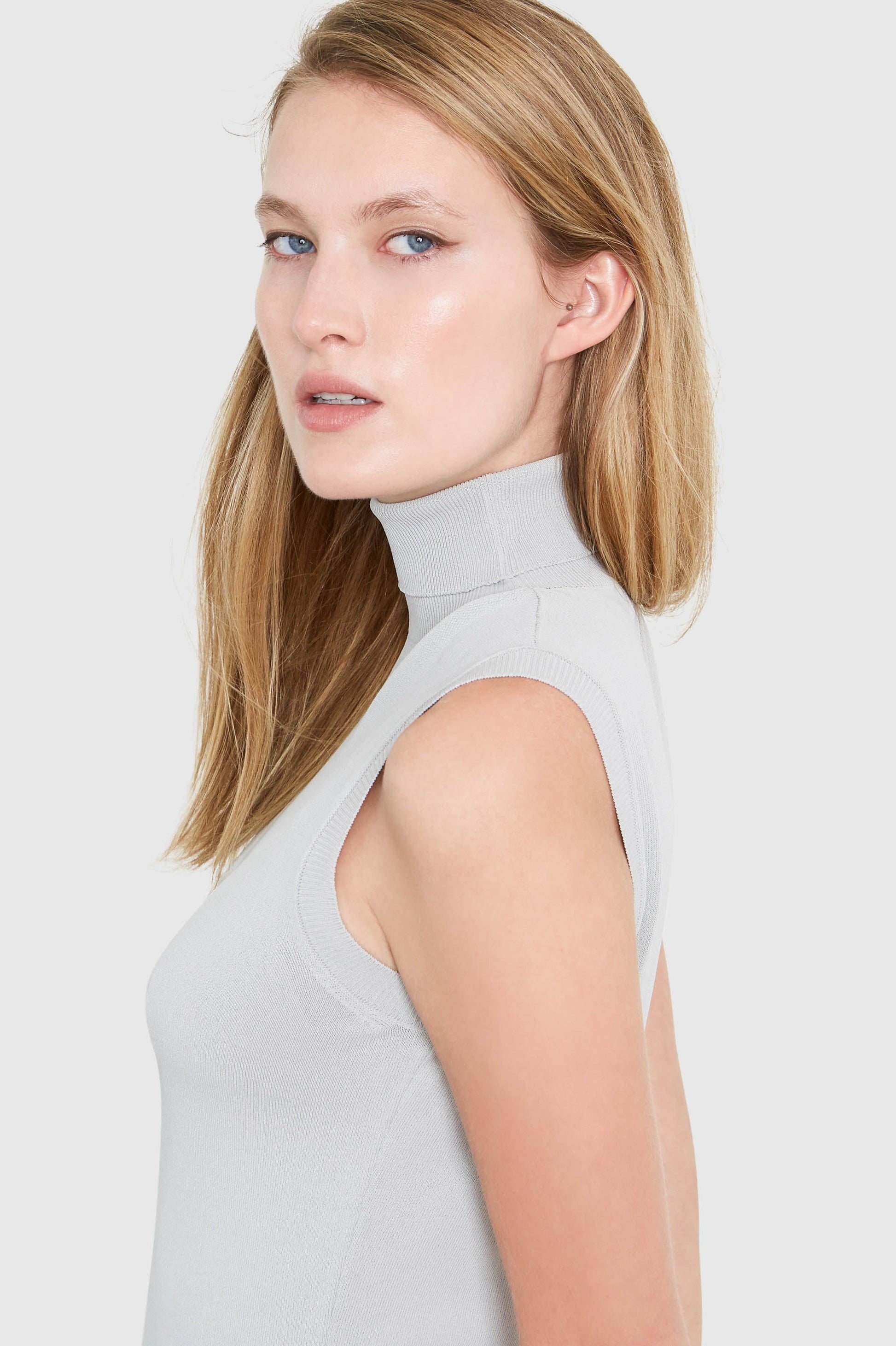 Sleeveless Visose Sweater Slim Fit Smoke Turtleneck by Hepburn