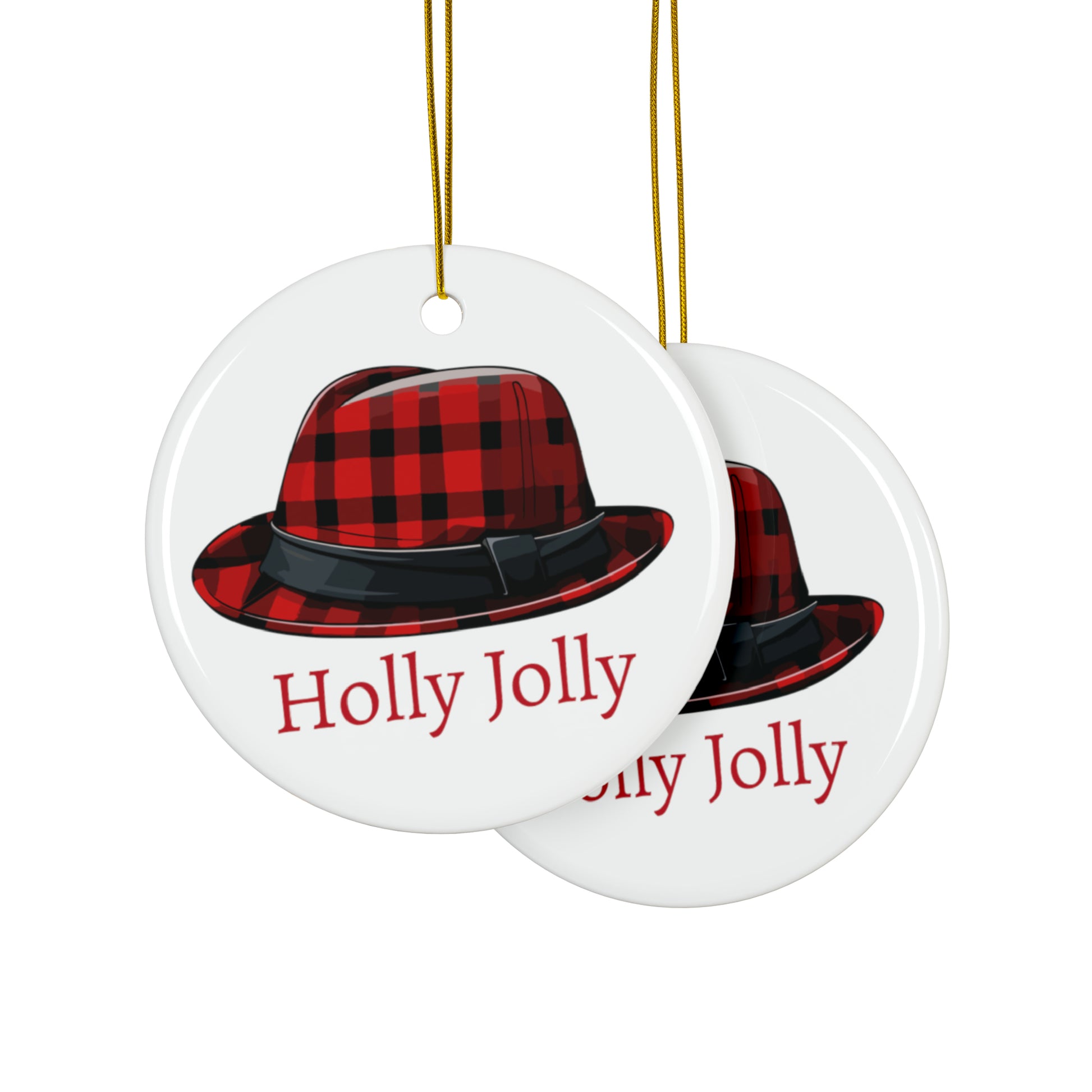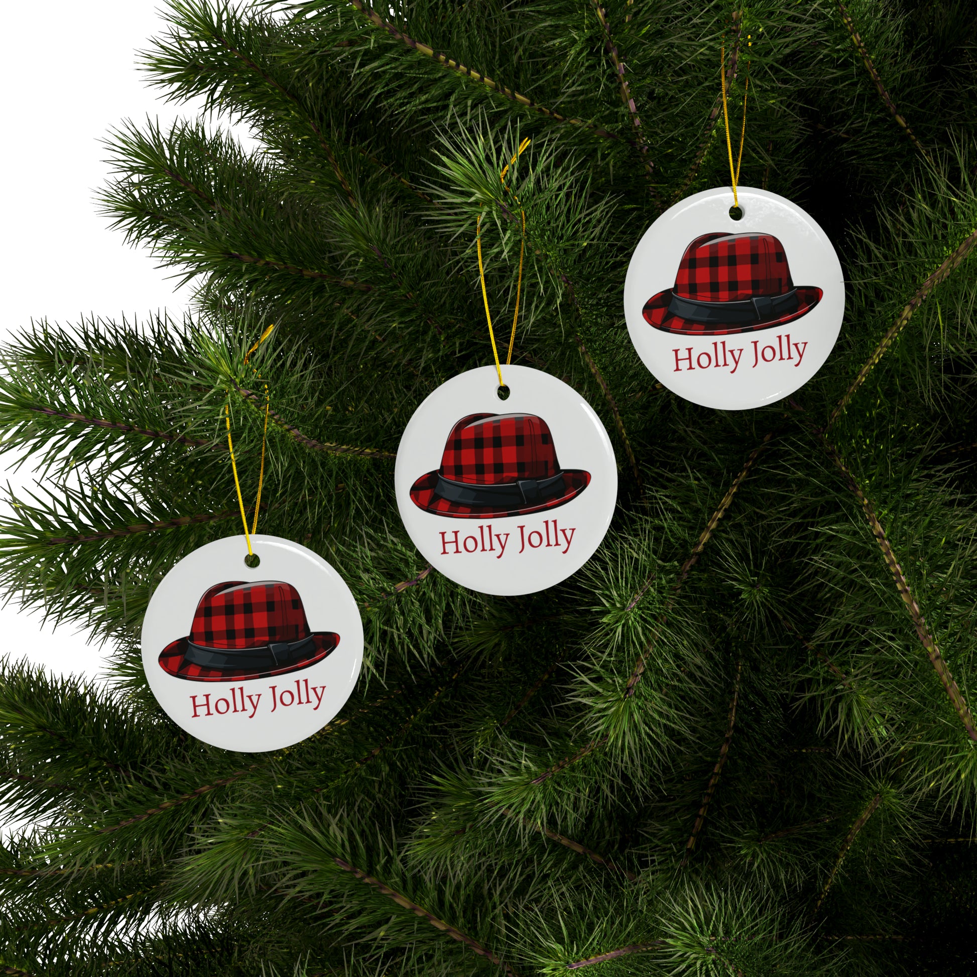 Holly Jolly Christmas hat Ceramic Ornaments (1pc, 3pcs, 5pcs, 10pcs)